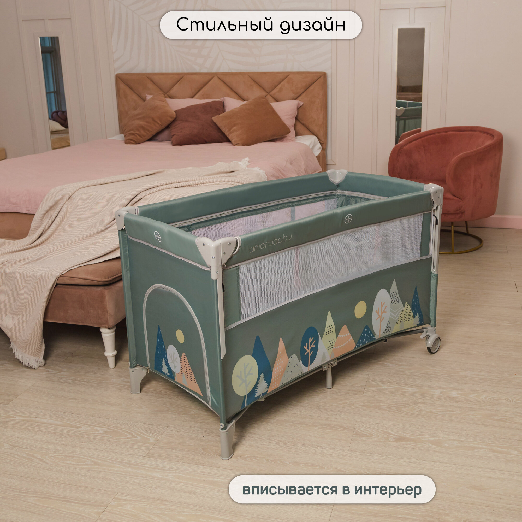 Купить Манеж-кровать Amarobaby TRANSFORM (Mountains) прямоугольный, зеленый