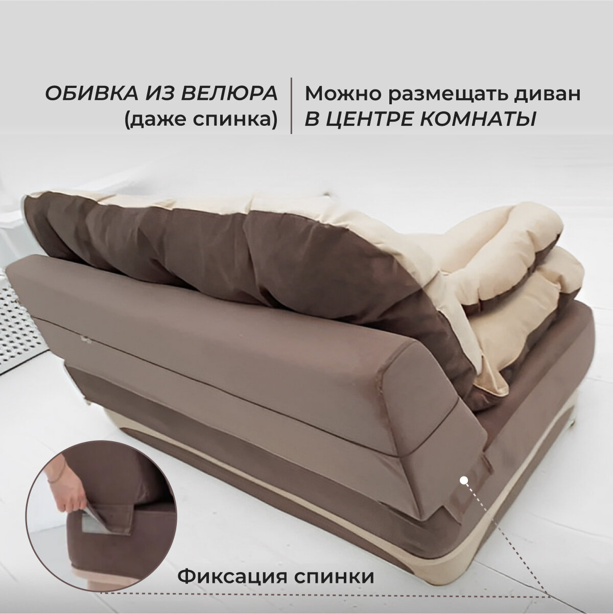 Диван раскладной двухместный от Div-one 195*93 см, трансформер, бескаркасный, спальное место 195*120 см, коричневый с бежевым