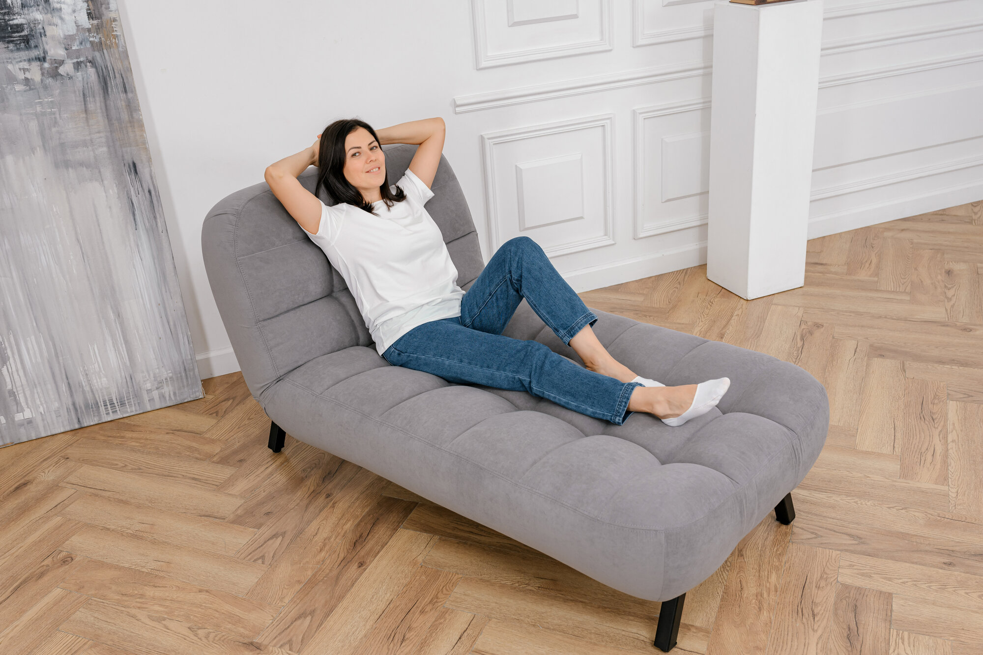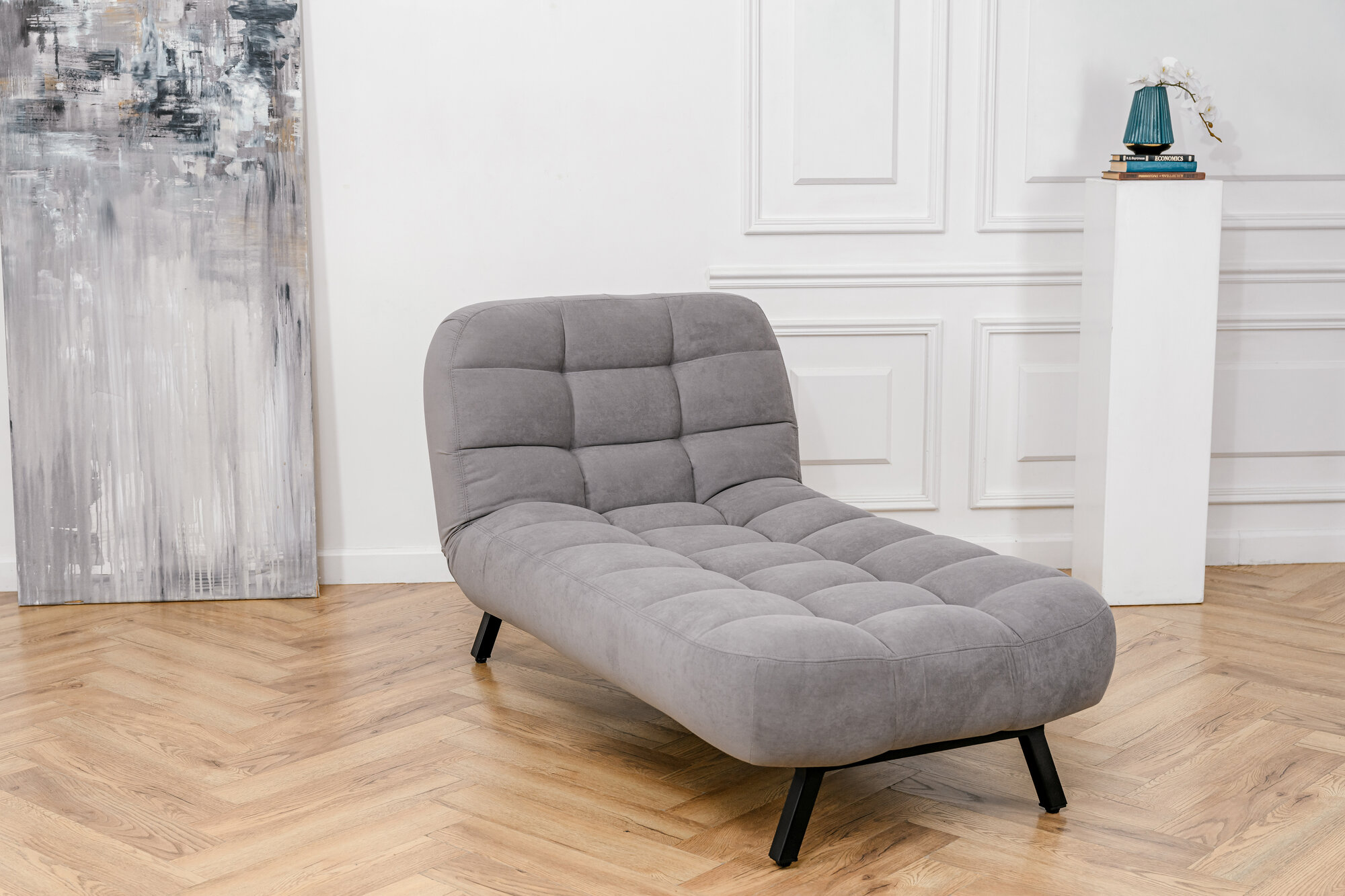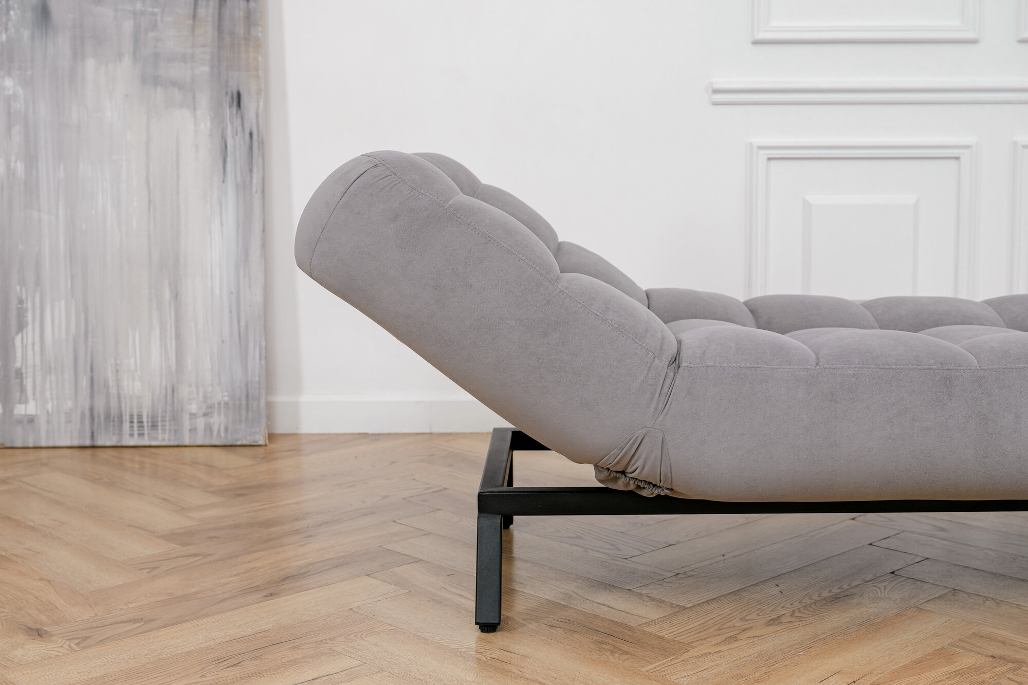 Купить Кушетка оттоманка Brendoss 310 лофт раскладная регулируемая клик-кляк на металлокаркасе материал износостойкий велюр, цвет серый