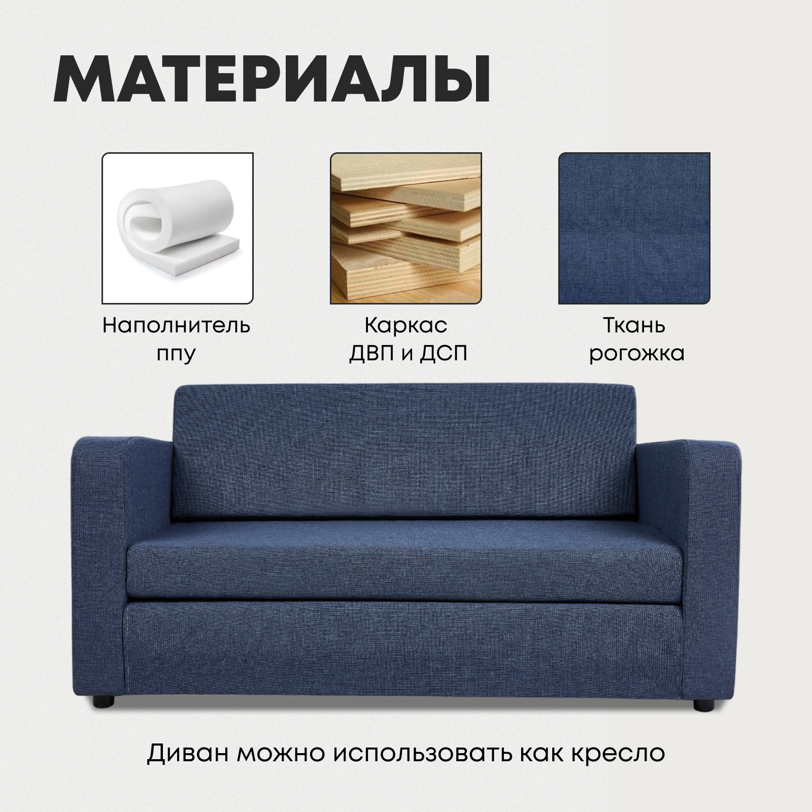 Купить Диван-кровать Сольста синий, рогожка, раскладка на пол