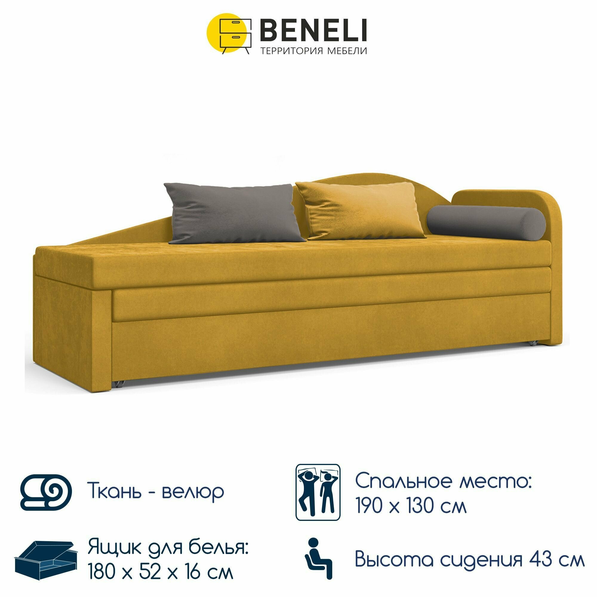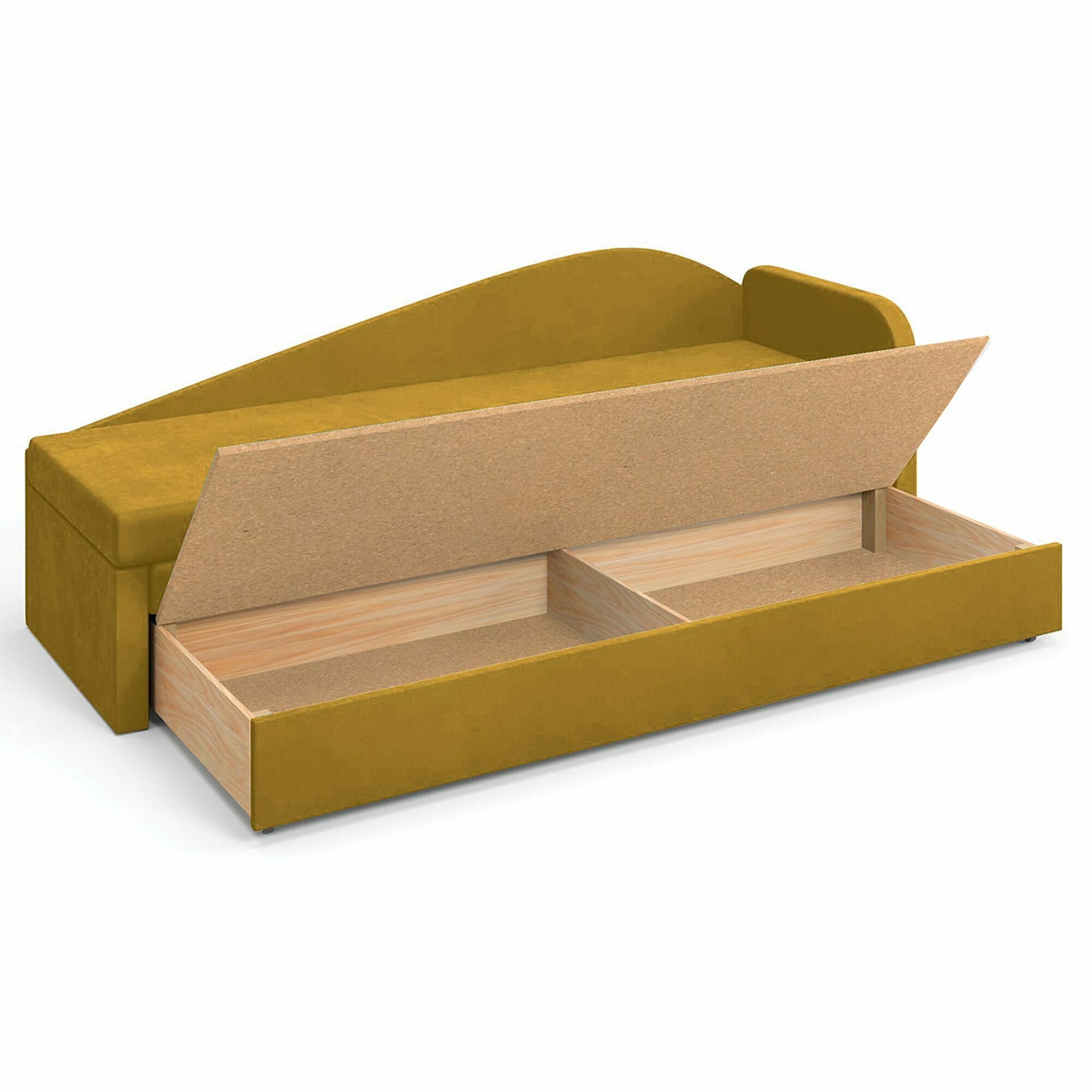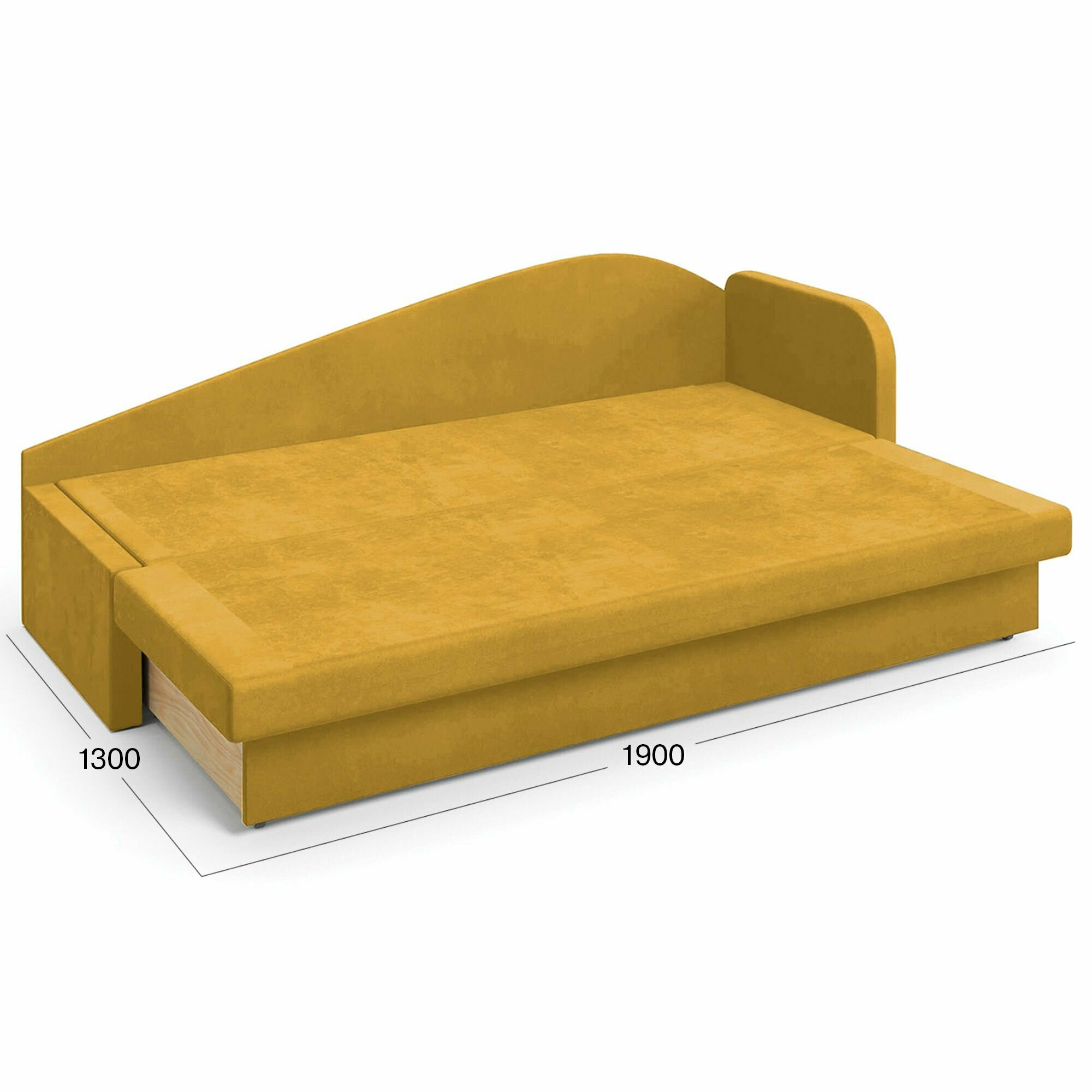 Диван-кровать, кушетка, прямой диван Beneli арчи (левый), раскладной, с ящиком для хранения, жёлтый, Велюр, механизм Выкатной, 200х68х80см, 1шт