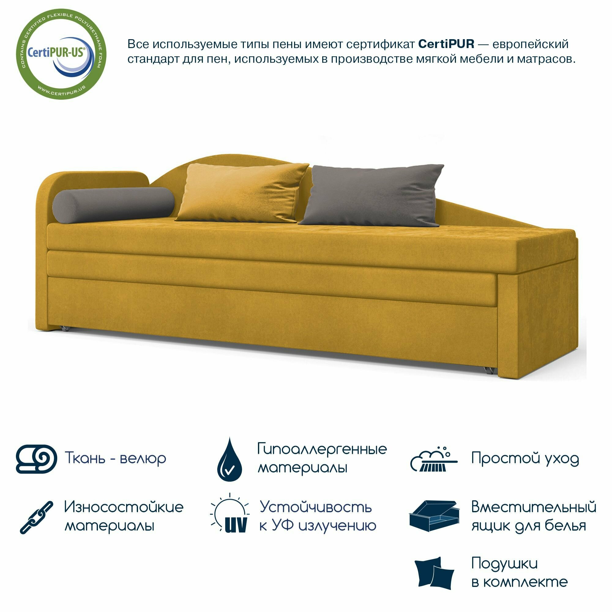 СохранитьДиван-кровать, кушетка, прямой диван Beneli арчи (левый), раскладной, с ящиком для хранения, жёлтый, Велюр, механизм Выкатной, 200х68х80см, 1шт интересное: