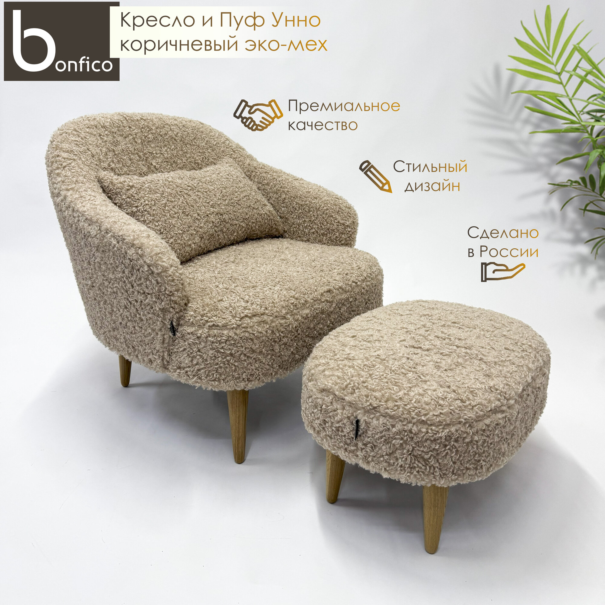 Комплект классическое кресло "Унно" + пуф, Коричневый мех, Барашек интересное: