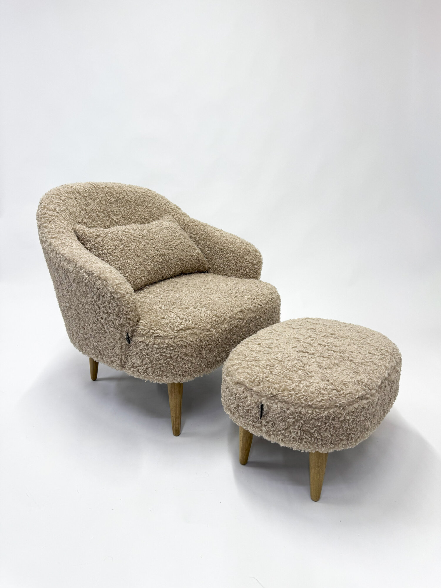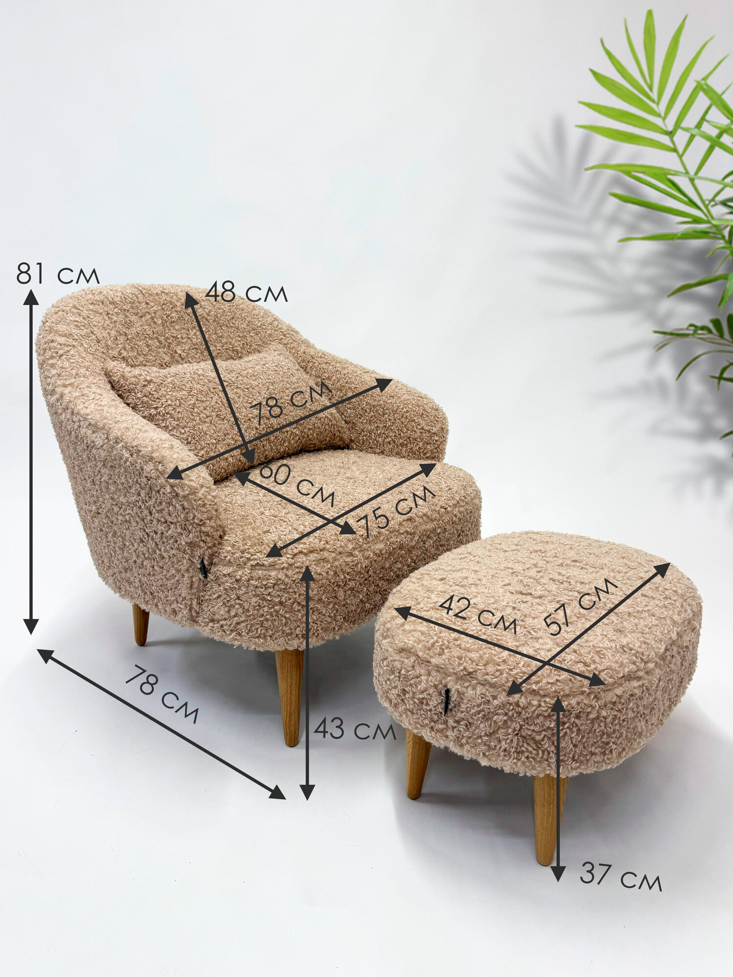 Комплект классическое кресло "Унно" + пуф, Кремовый мех, кресло барашек