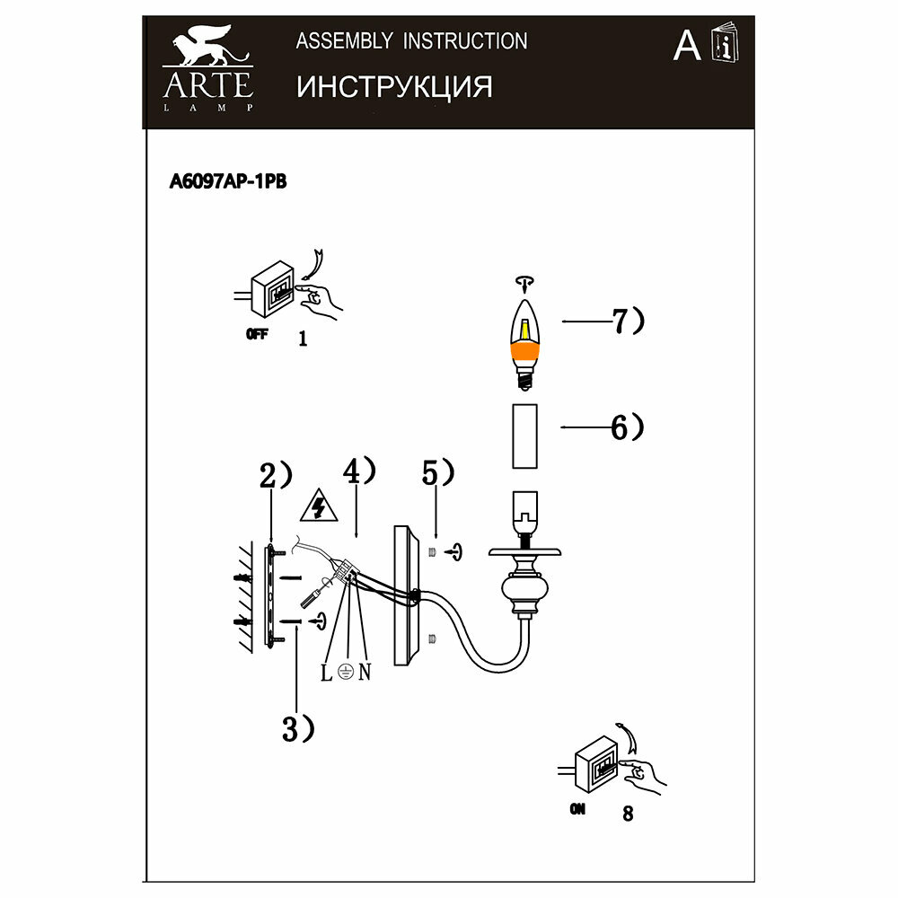 | Комплектация | бра Arte Lamp A6097AP-1PB |