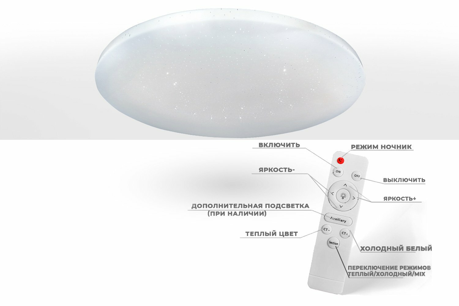 Светильник светодиодный накладной Семь Огней Асита 3000-6400К 90 Вт 25 кв. м белый IP20 с пультом (45443.45.90.77)