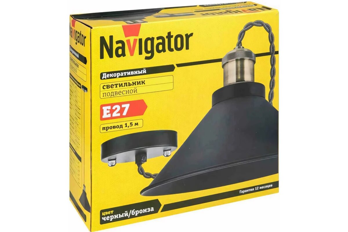 Купить Светильник декоративный подвесной Navigator 61 535, 60Вт, Е27, 1,5м. метал. черный/бронза