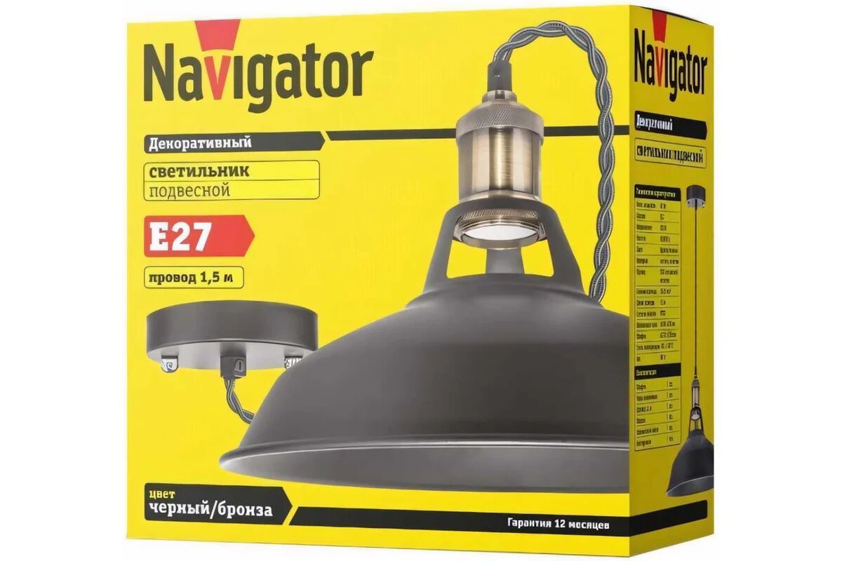 Светильник декоративный подвесной Navigator 61 535, 60Вт, Е27, 1,5м. метал. черный/бронза интересное: