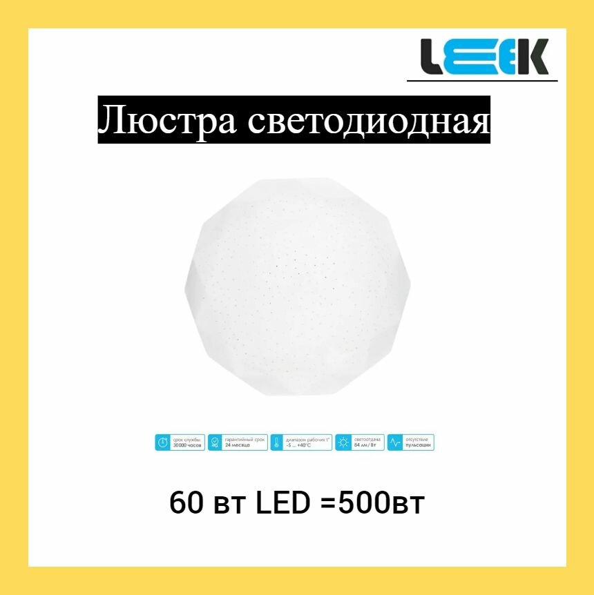 Купить LEEK св-к-люстра светодиодн. 60W(5100lm) 5000K 6K d500x80 Бриллиант СЛЛ 041 (арт. 676730)
