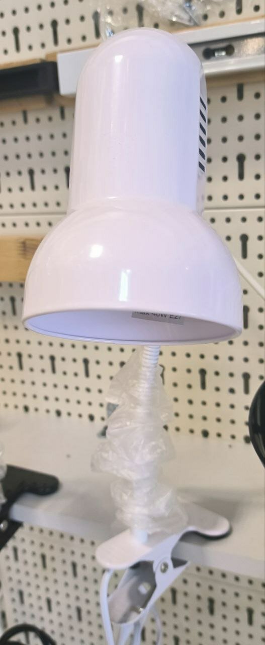 Настольный светильник на прищепке металлический, патрон Е27 керамика, 40 Вт, белый