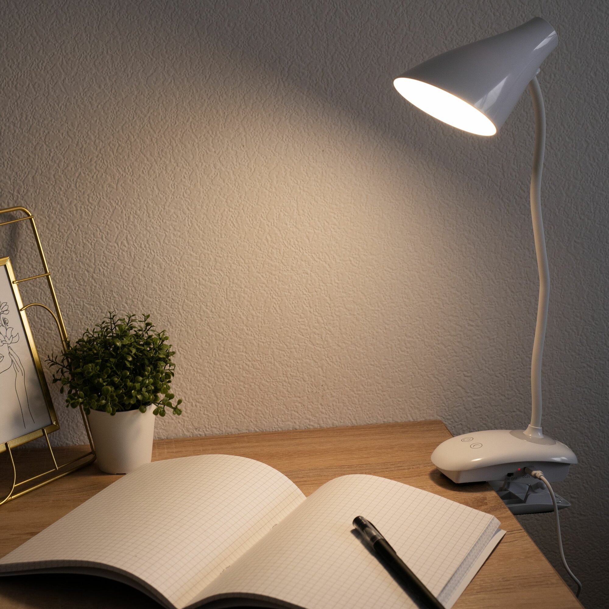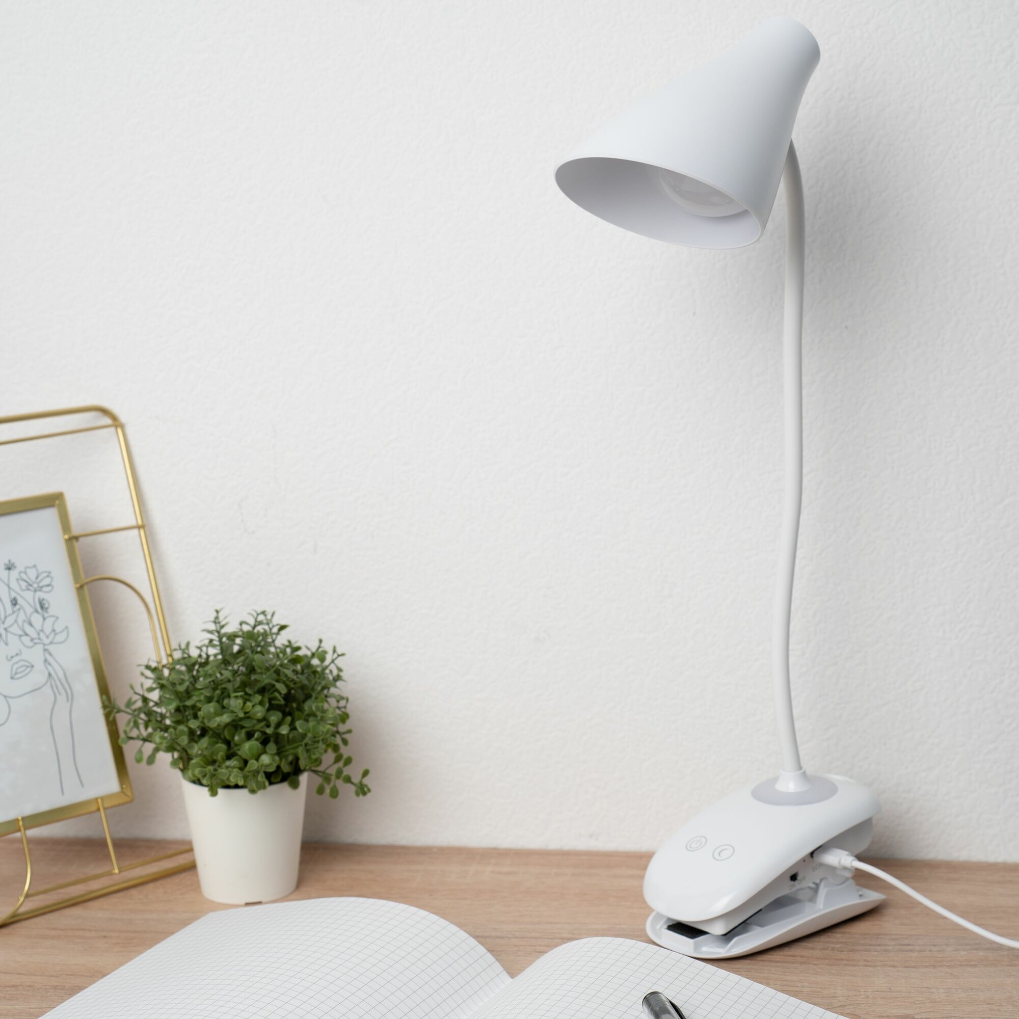 Лампа настольная старт светодиодный светильник для школьника на прищепке, сенсорный, регулировка яркости, зарядка телефона