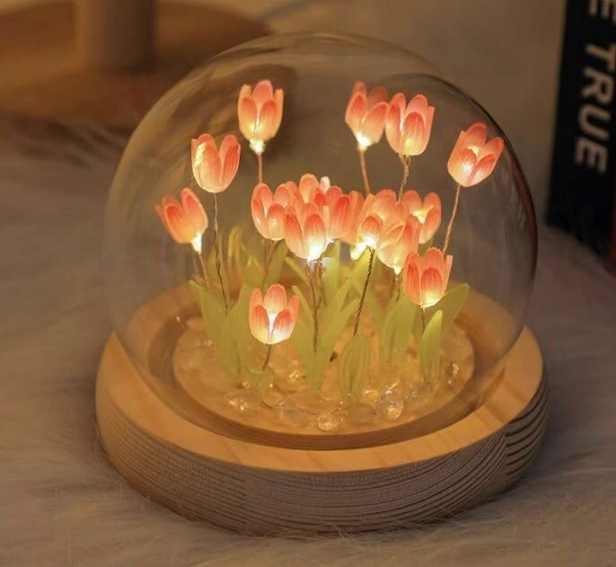 СохранитьДекоративный светодиодный ночник тюльпаны / Светильник ночник цветы в колбе 10х10 см. Розовый интересное:
