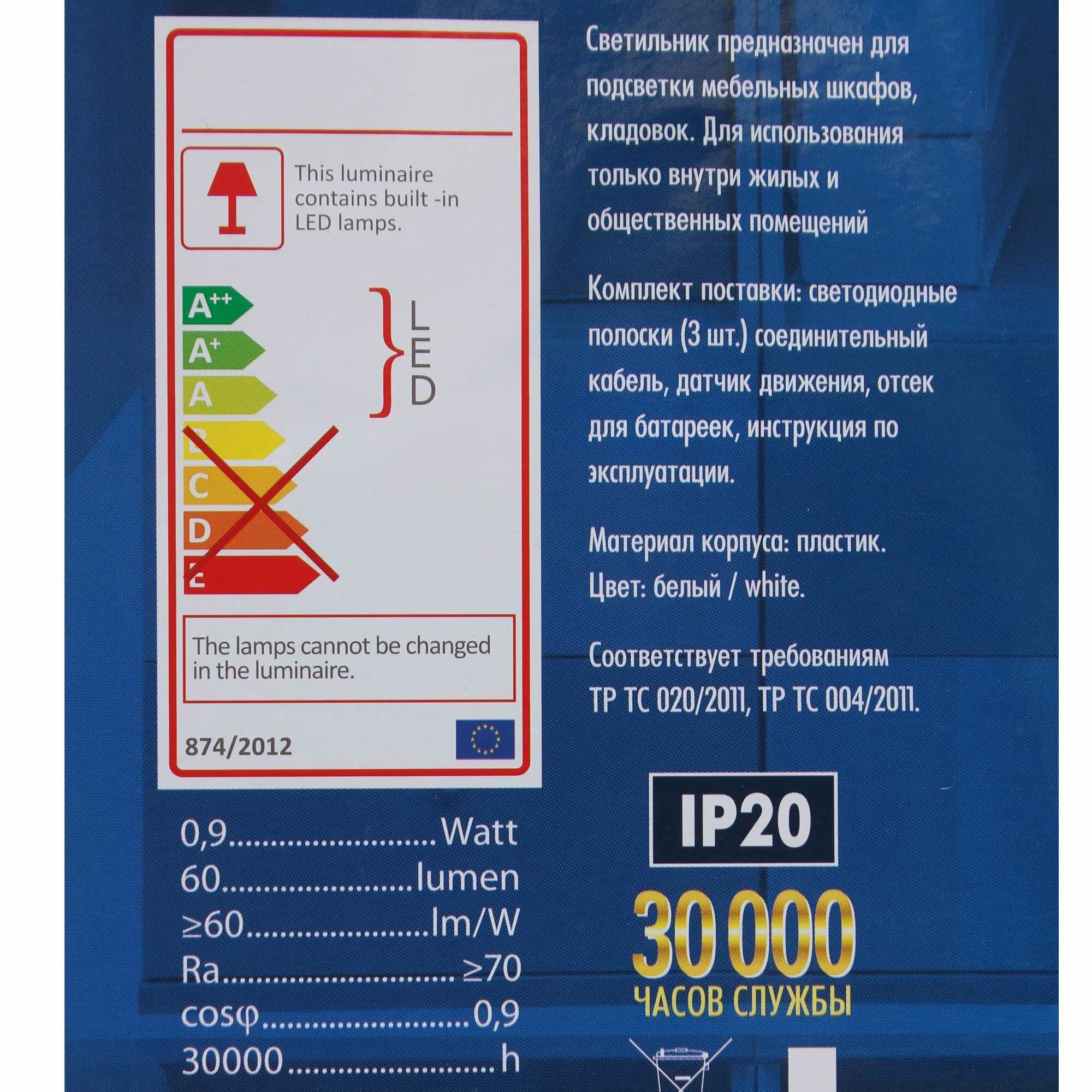 Светильник для мебели светодиод, Uniel, 0.9 Вт, 4200 К, 60 Лм, дат движ., для внутренней подсветки,