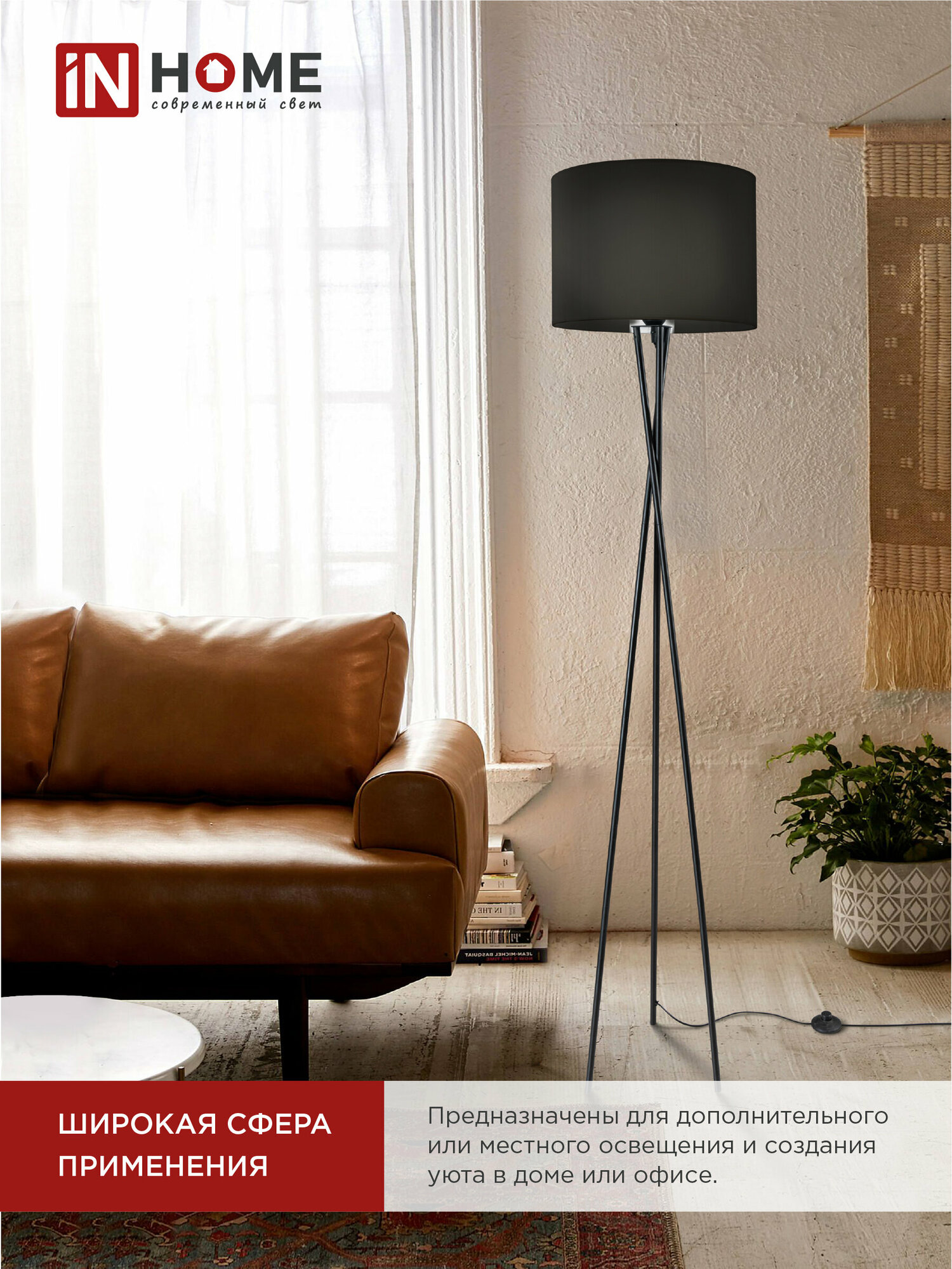 Торшер напольный светильник лофт IN HOME ТНО 04Ч 60Вт Е27 230В черный