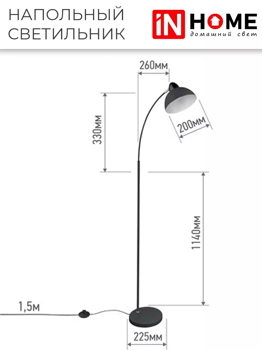 Торшер напольный светильник лофт IN HOME ТНО 02Ч 60Вт Е27/Е14 230В черный