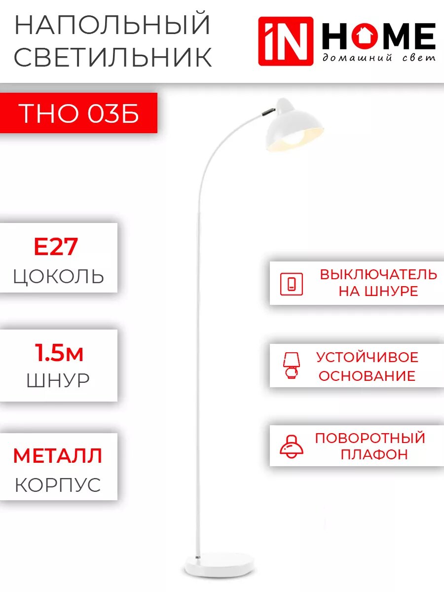 СохранитьТоршер напольный. Светильник напольный на основании ТНО 03Б 60Вт Е27 230В белый IN HOME 4690612042695 интересное: