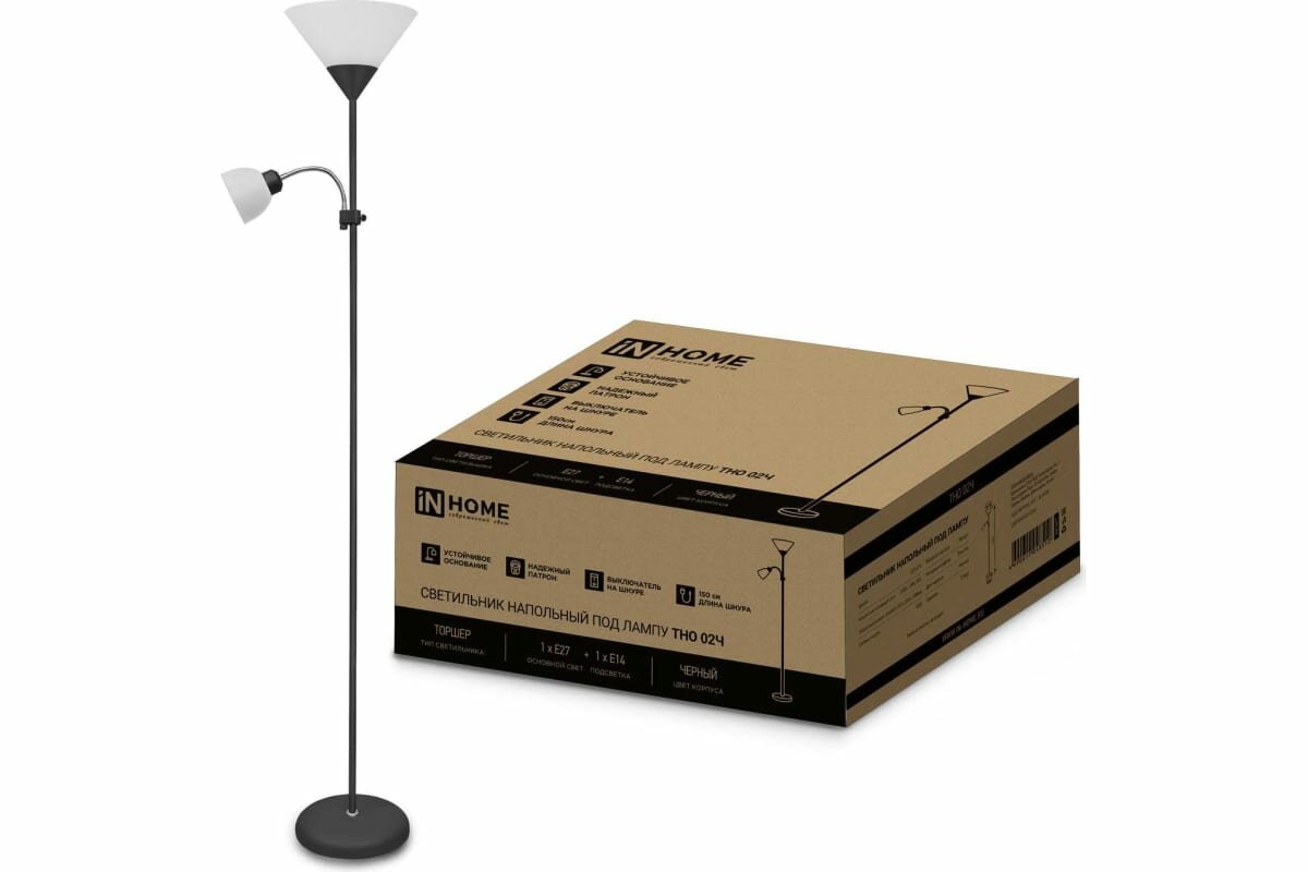 Торшер напольный светильник лофт IN HOME ТНО 02Ч 60Вт Е27/Е14 230В черный