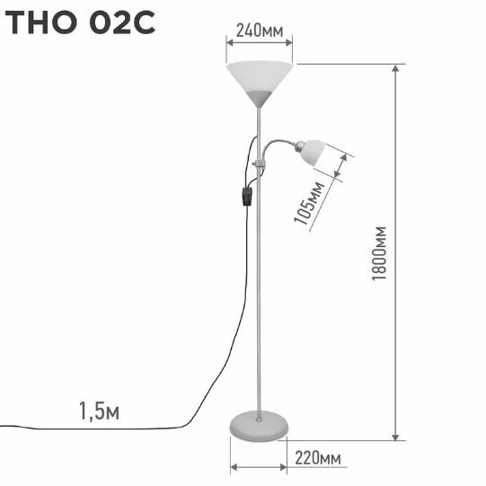 СохранитьСветильник напольный под лампу на основании ТНО 02С 60Вт Е27/Е14 230В серебро IN HOME интересное: