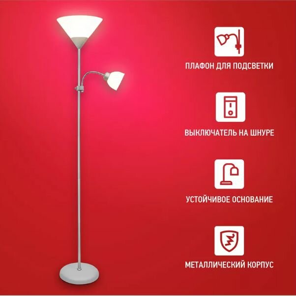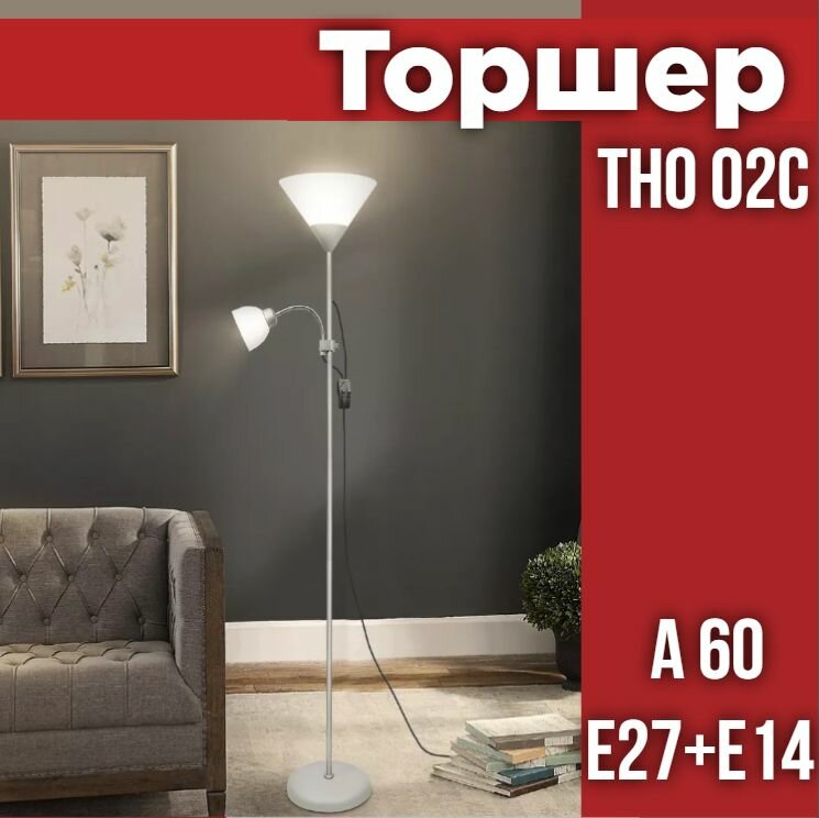 Торшер напольный. Светильник напольный на основании ТНО 02С 60Вт Е27/Е14 230В серебро IN HOME