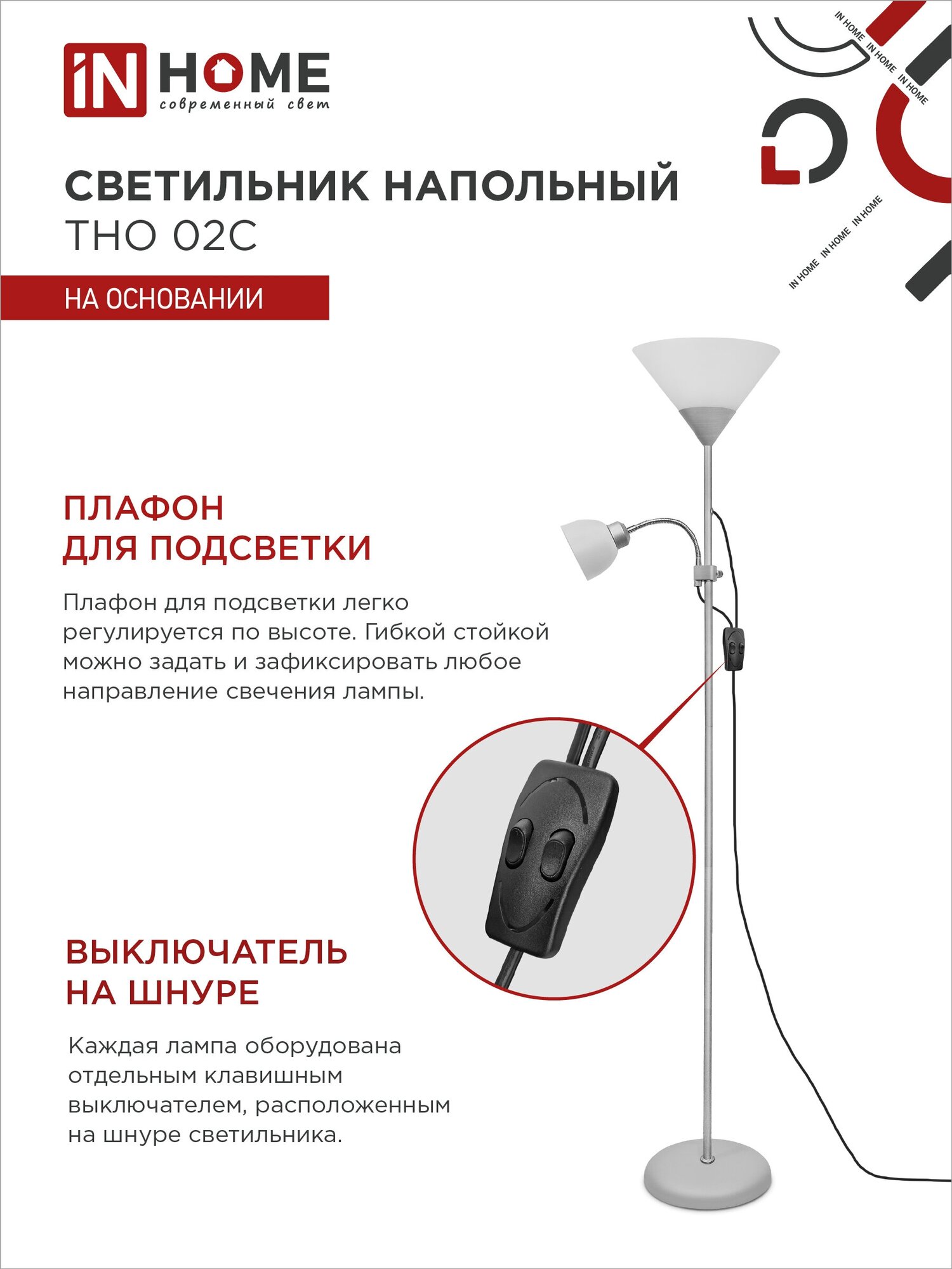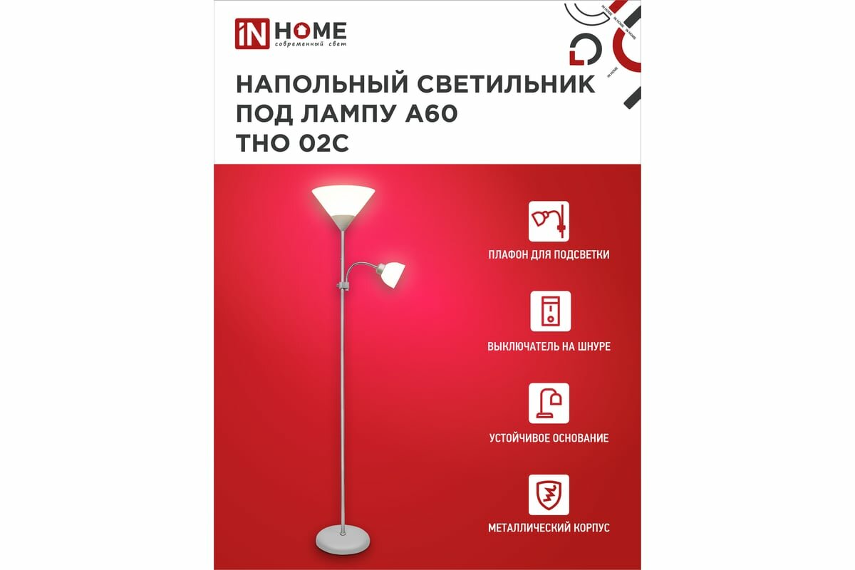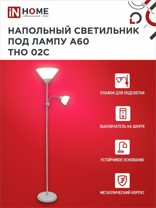 IN HOME Светильник напол п/лампу на основании тно 02с 60вт е27/е14 230в серебро 4690612042671