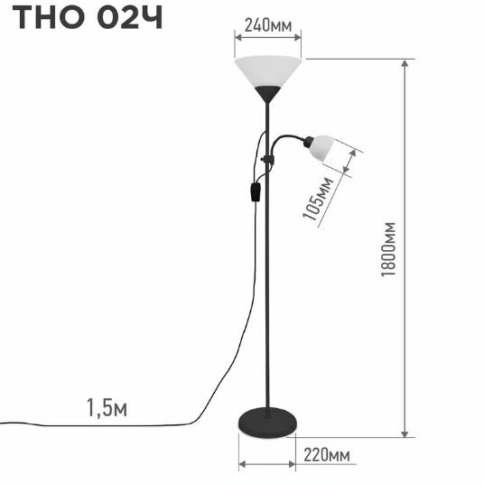 Светильник торшер напольный под лампу на основании ТНО 02Ч 60Вт Е27/Е14 230В ЧЕРНЫЙ IN HOME