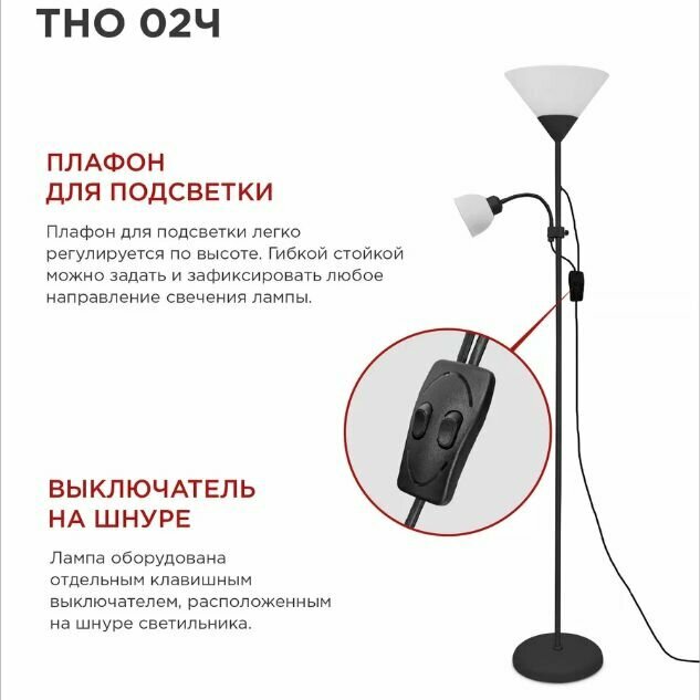 Светильник напольный под лампу, на основании ТНО 02Ч 60Вт чёрный IN HOME 4690612048512