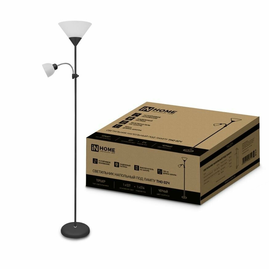 Торшер напольный светильник лофт IN HOME ТНО 02Ч 60Вт Е27/Е14 230В черный