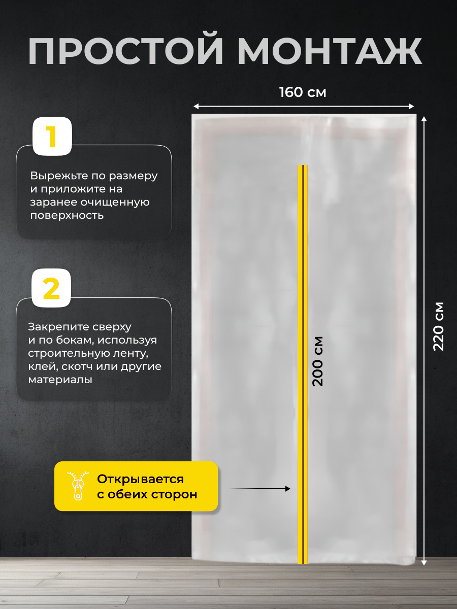 Временная дверь/ Одноразовая дверь, застежка молния, 160*220 см (Белый/Черный)