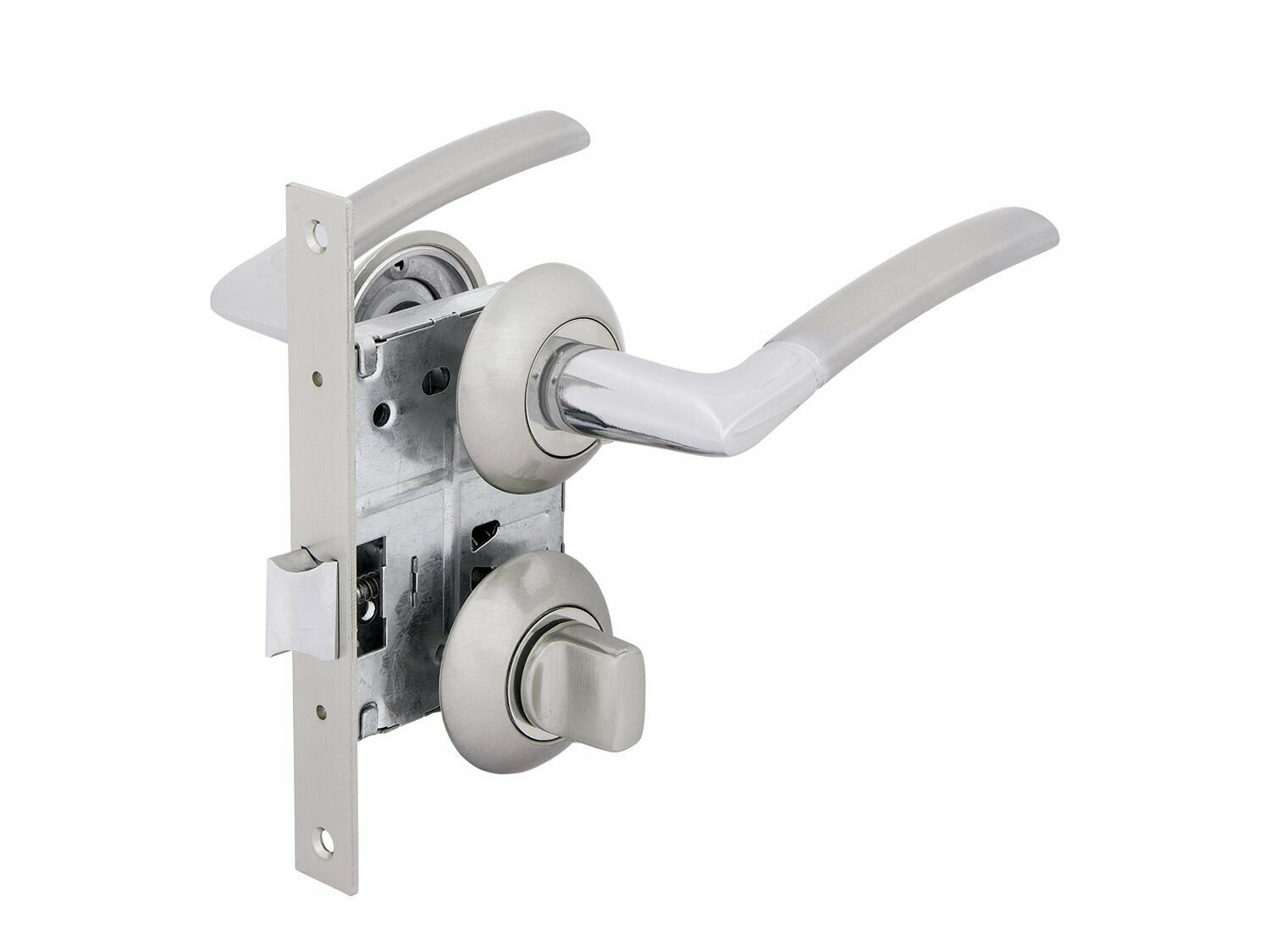 Ручка дверная межкомнатная / комплект с защелкой, фиксатором и петлями (01-C 170 SN)