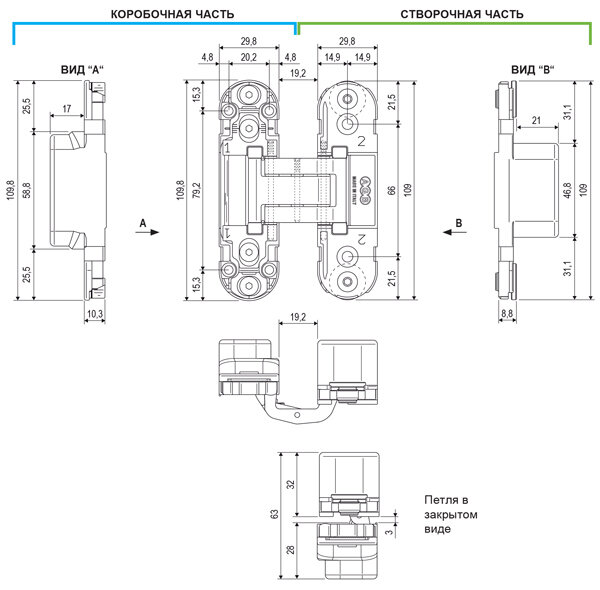 | Дополнительная информация | регулировка в 3-х плоскостях, комплектация - петля и накладки; допустимая нагрузка на 2 петли: 40 кг; допустимая нагрузка на 3 петли: 60 кг |