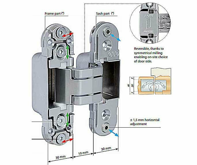 Петля дверная скрытой установки AGB E30200.03.34 мат. хром петля ECLIPSE 2.0 + 4 накладки в комплект