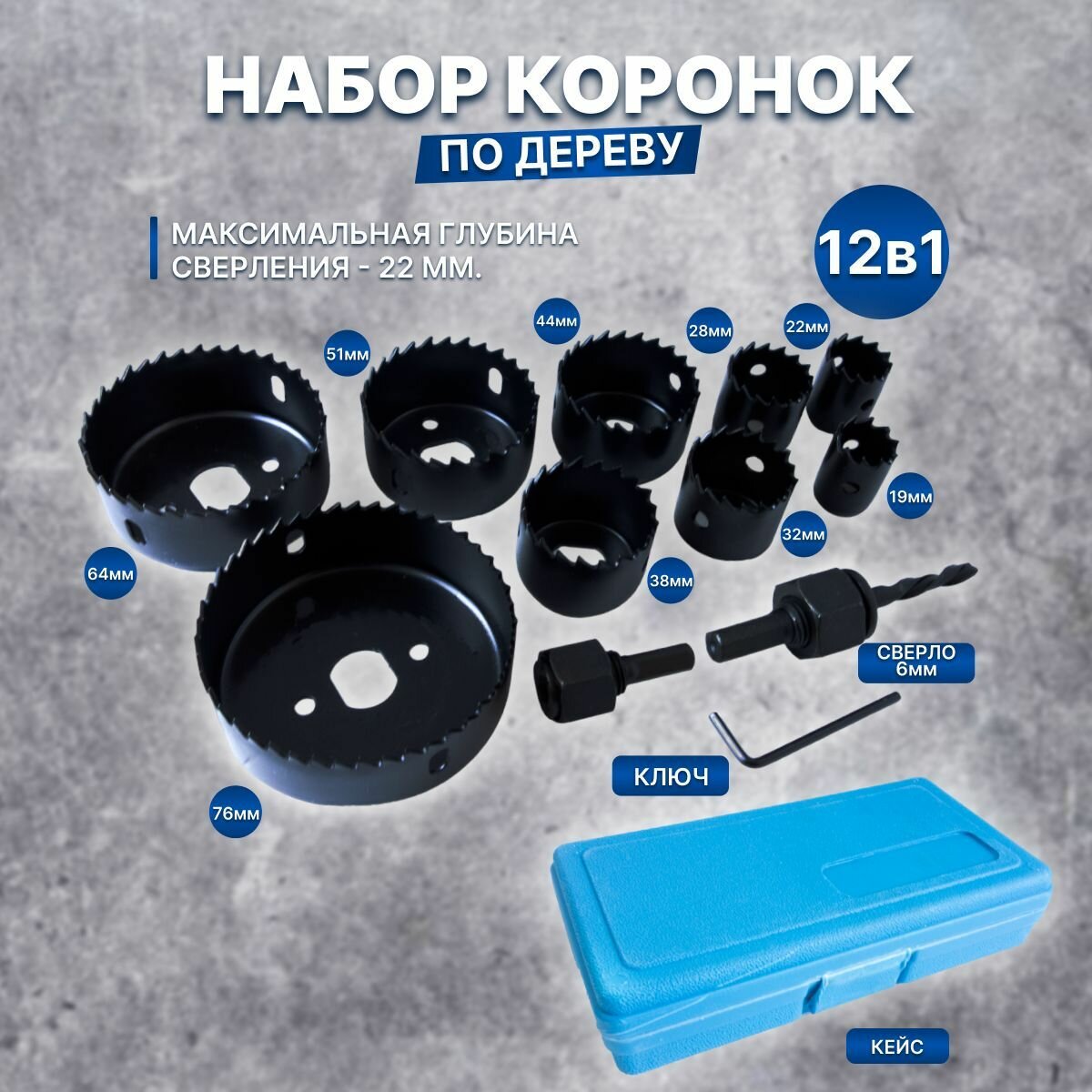 Набор кольцевых пил (коронок) X-PERT по дереву в кейсе 12 предметов интересное: