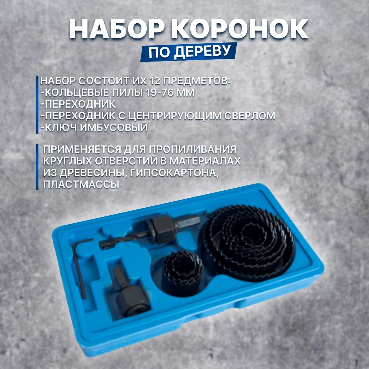 Набор кольцевых пил (коронок) по дереву X-PERT в синем кейсе 16 предметов