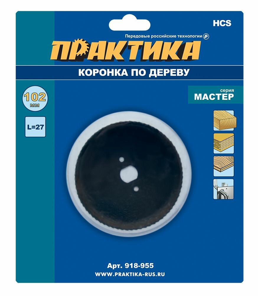 Коронка HCS по дереву ПРАКТИКА "Мастер" 102 мм, L-27мм, без адаптера (1 шт), блистер