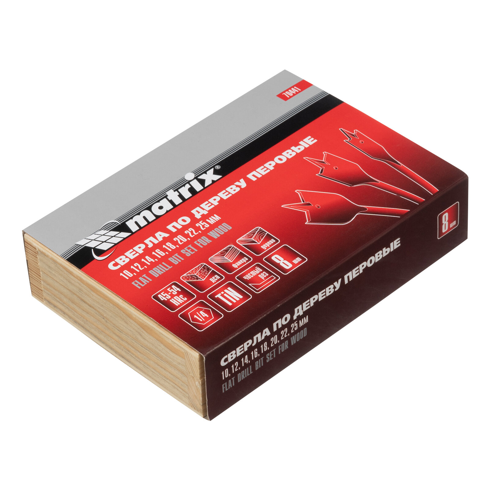 Купить Набор сверл перовых по дереву, 10-12-14-16-18-20-22-25 мм, 8 шт, деревянный кейс Matrix