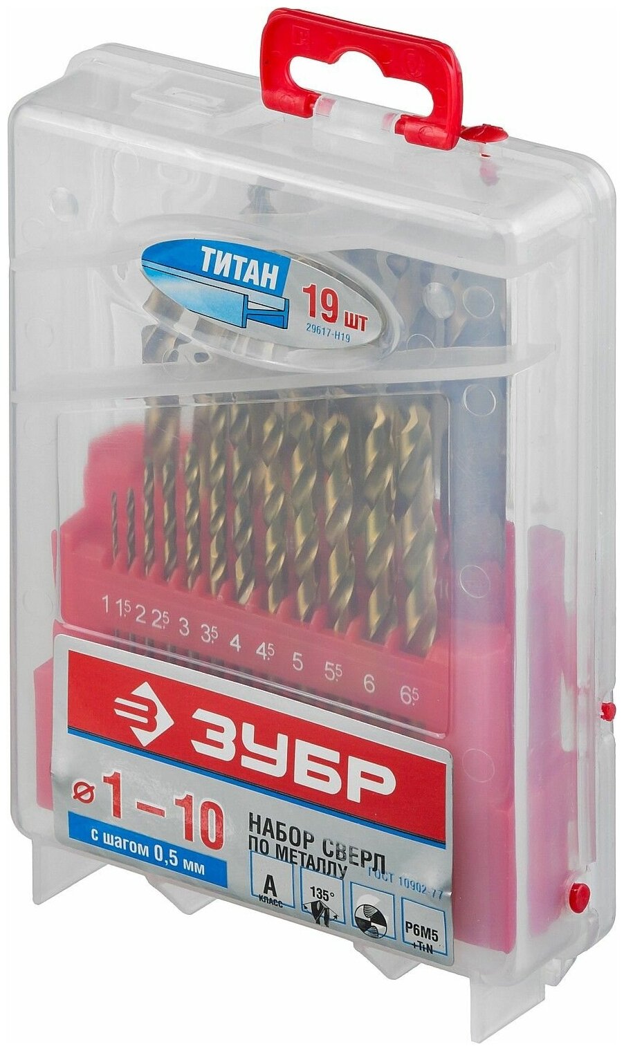 ЗУБР титан, 19 шт, (1-10 мм), сталь Р6М5, класс А, титановое покрытие, набор сверл по металлу, Профессионал (29617-H19) интересное: