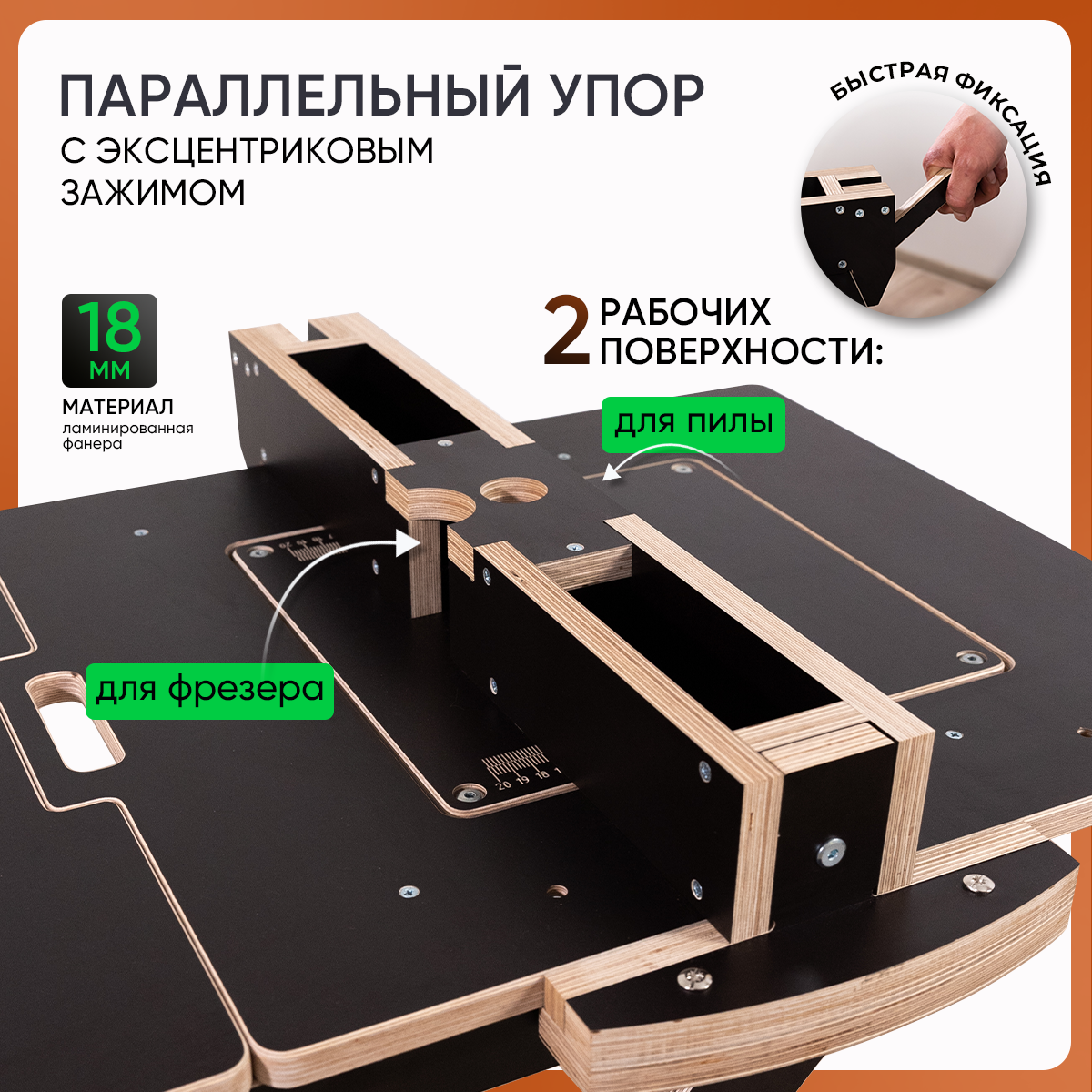 Параллельный упор с эксцентриковым зажимом для верстака Стройарт
