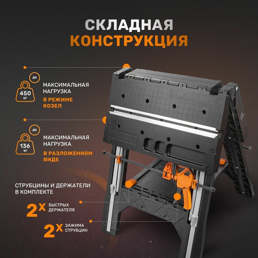 Купить WORX Рабочий стол Pegasus 135 кг 78х64х81 см WX051