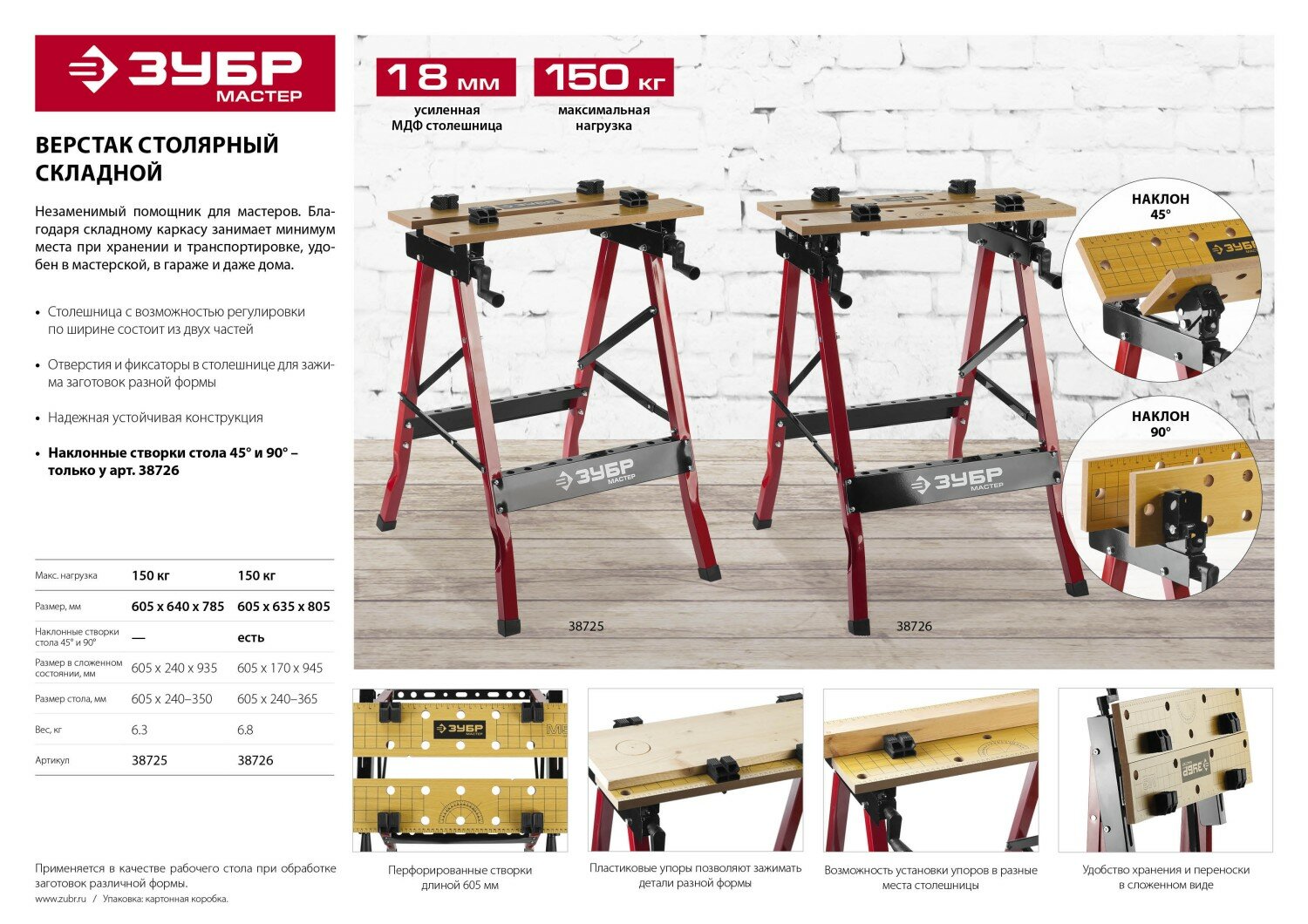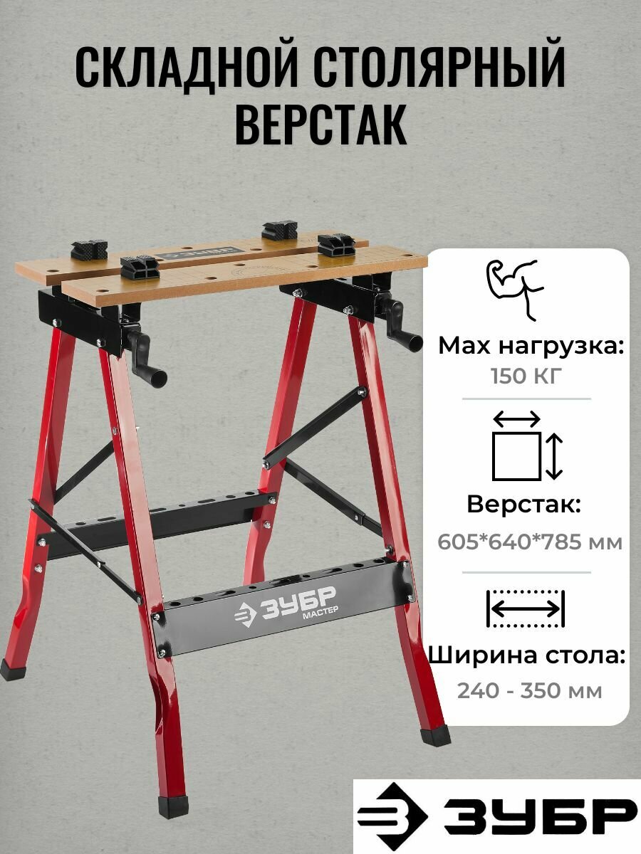 ЗУБР М-300, 605х640х785 мм, Складной столярный верстак (38725) интересное: