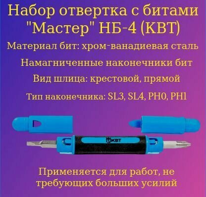Набор отверток КВТ НБ-4 с битами серии мастер (78697)