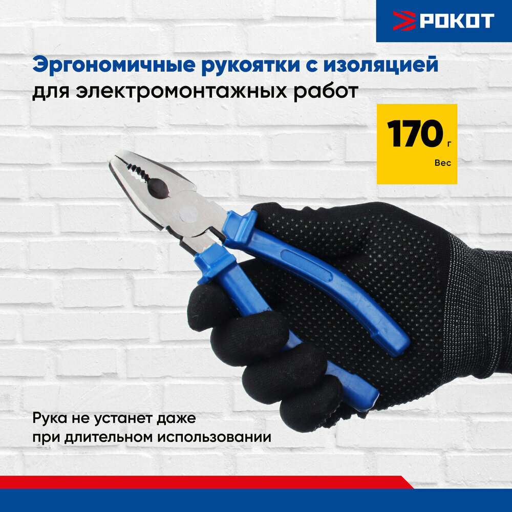 Пассатижи комбинированные шлифованные 180мм рокот
