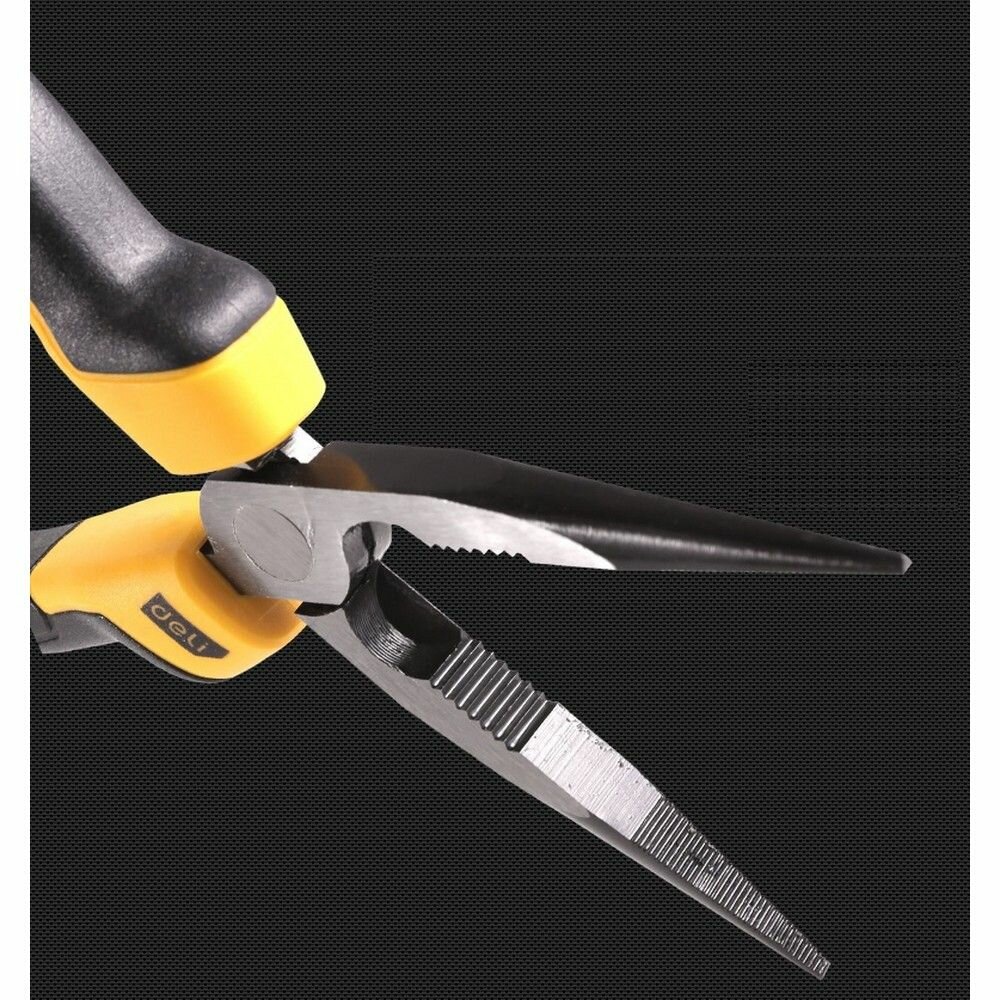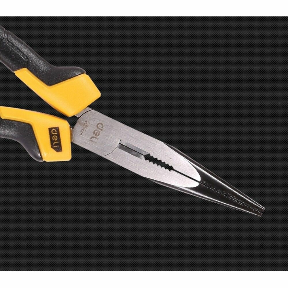 Удлиненные плоскогубцы Deli DL2108Z 200мм (сталь CrV, прорезиненная двухкомпонентная рукоять)