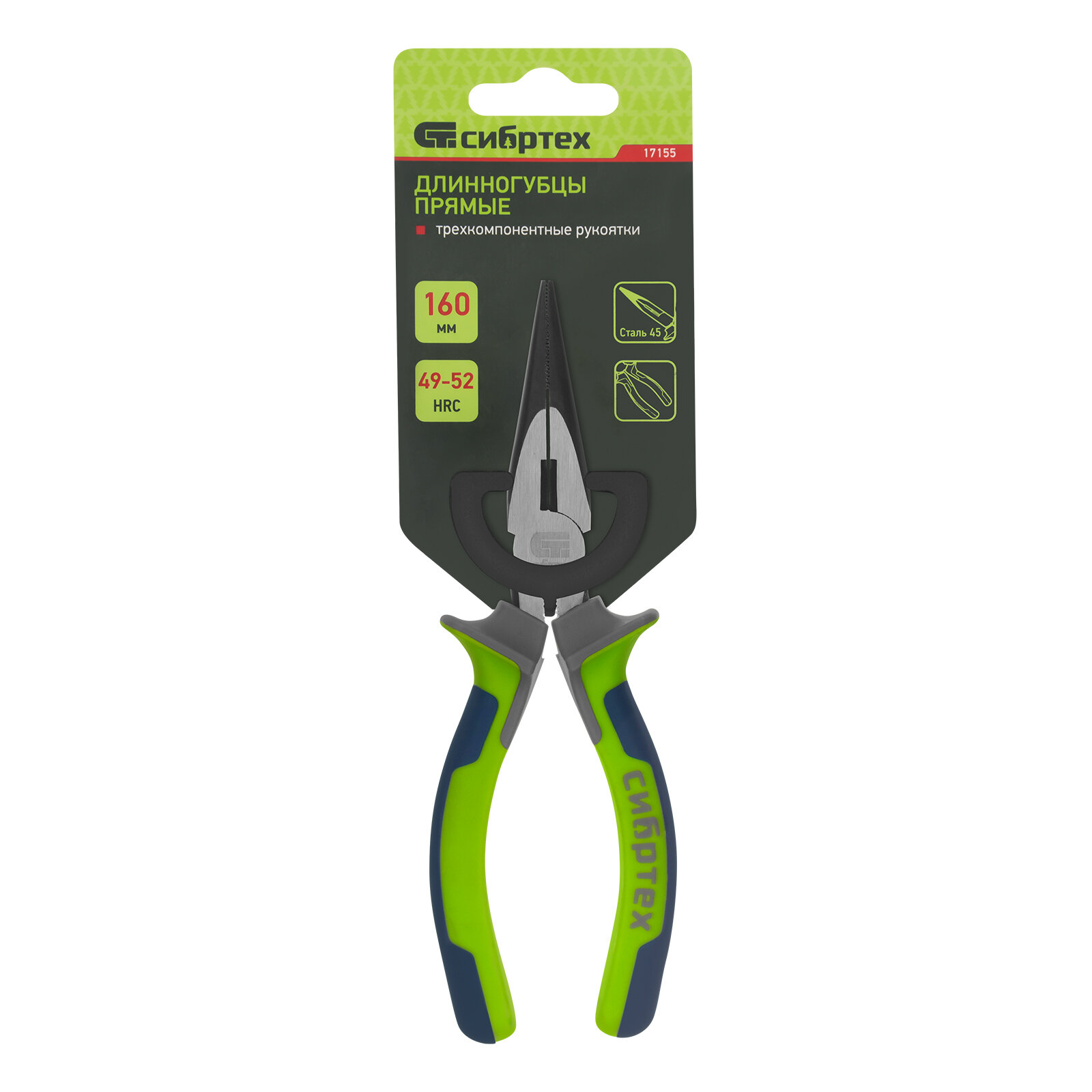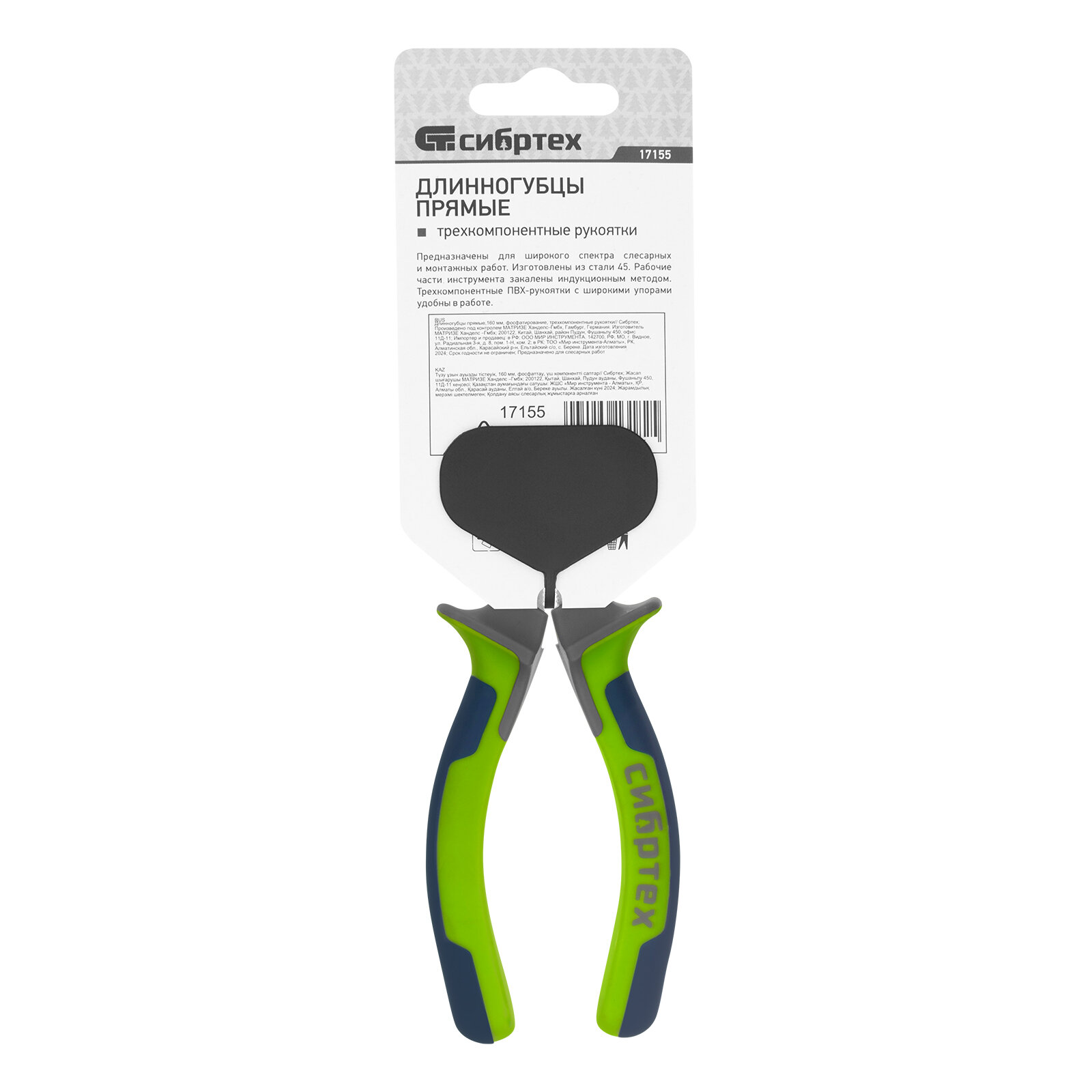 Купить Длинногубцы прямые Сибртех 160 мм, фосфатирование, трехкомпонентные рукоятки 17155