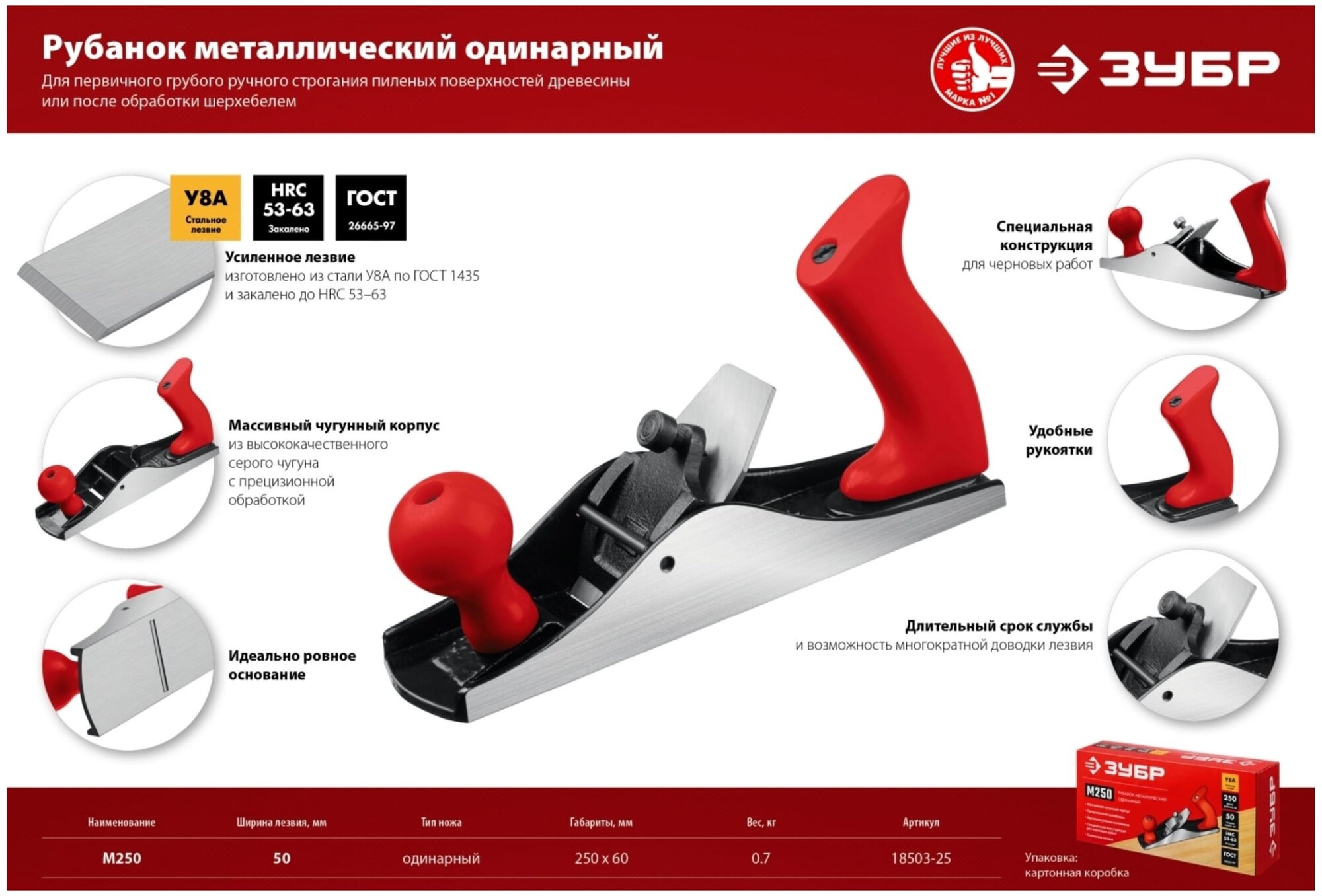 ЗУБР М250 250х60 мм, Металлический рубанок (18503-25) интересное: