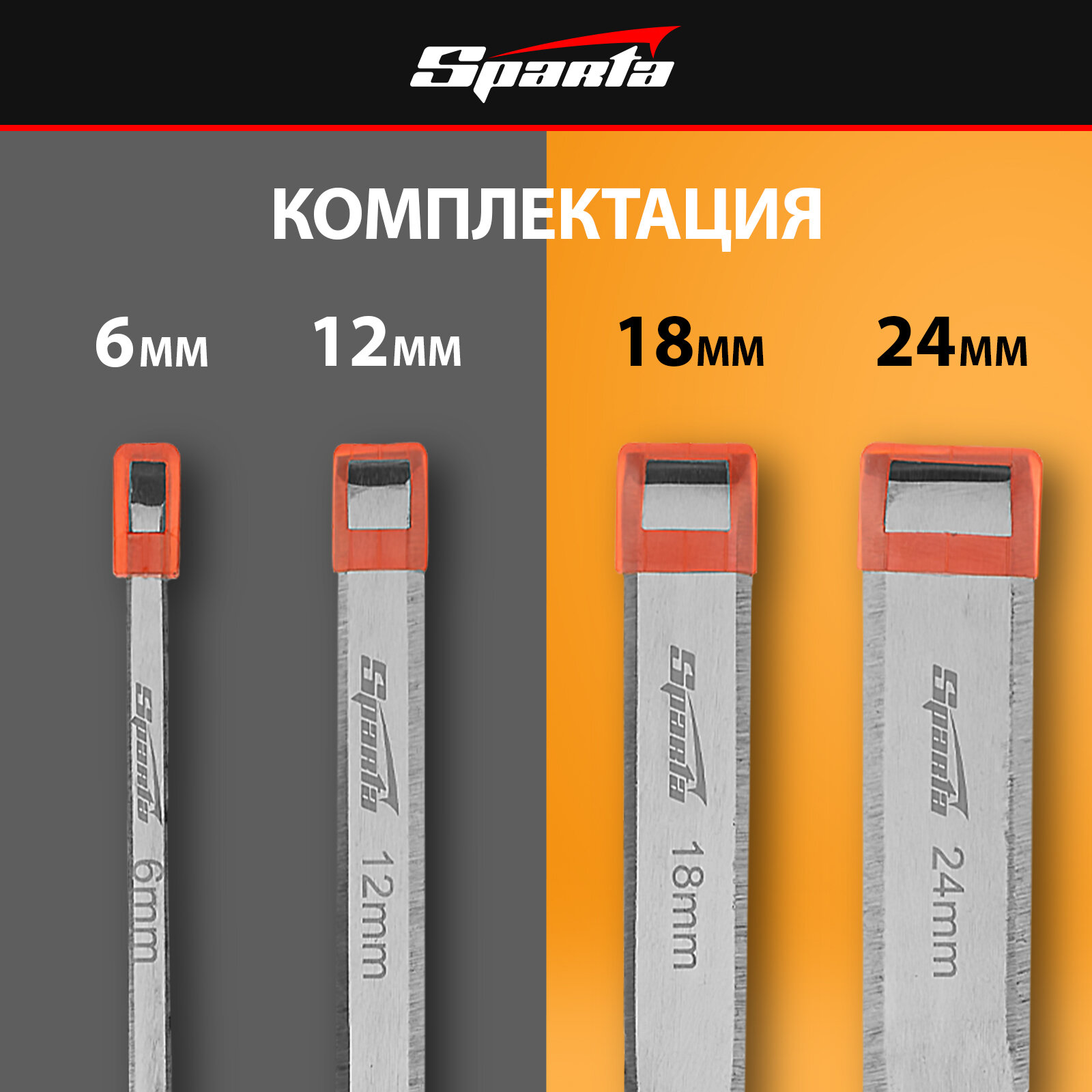 Набор стамесок Sparta 4 шт, 6-12-18-24 мм, плоские, пластиковые ударные рукоятки 243975 интересное: