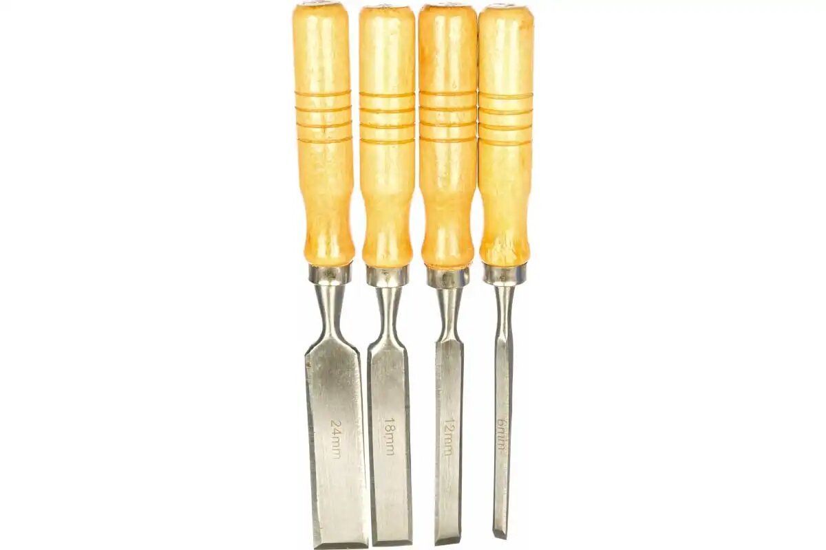 Набор стамесок Sparta 6-12-18-24 мм, плоские, деревянные рукоятки 243965 интересное: