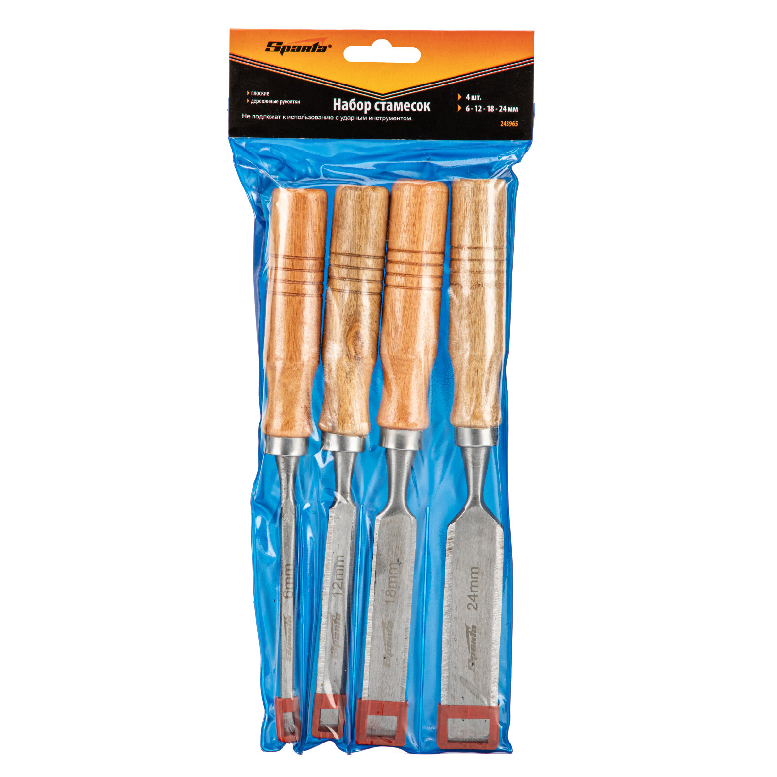 SPARTA 243965 Набор стамесок, 6-12-18-24 мм, поские, деревянные рукоятки SPARTA