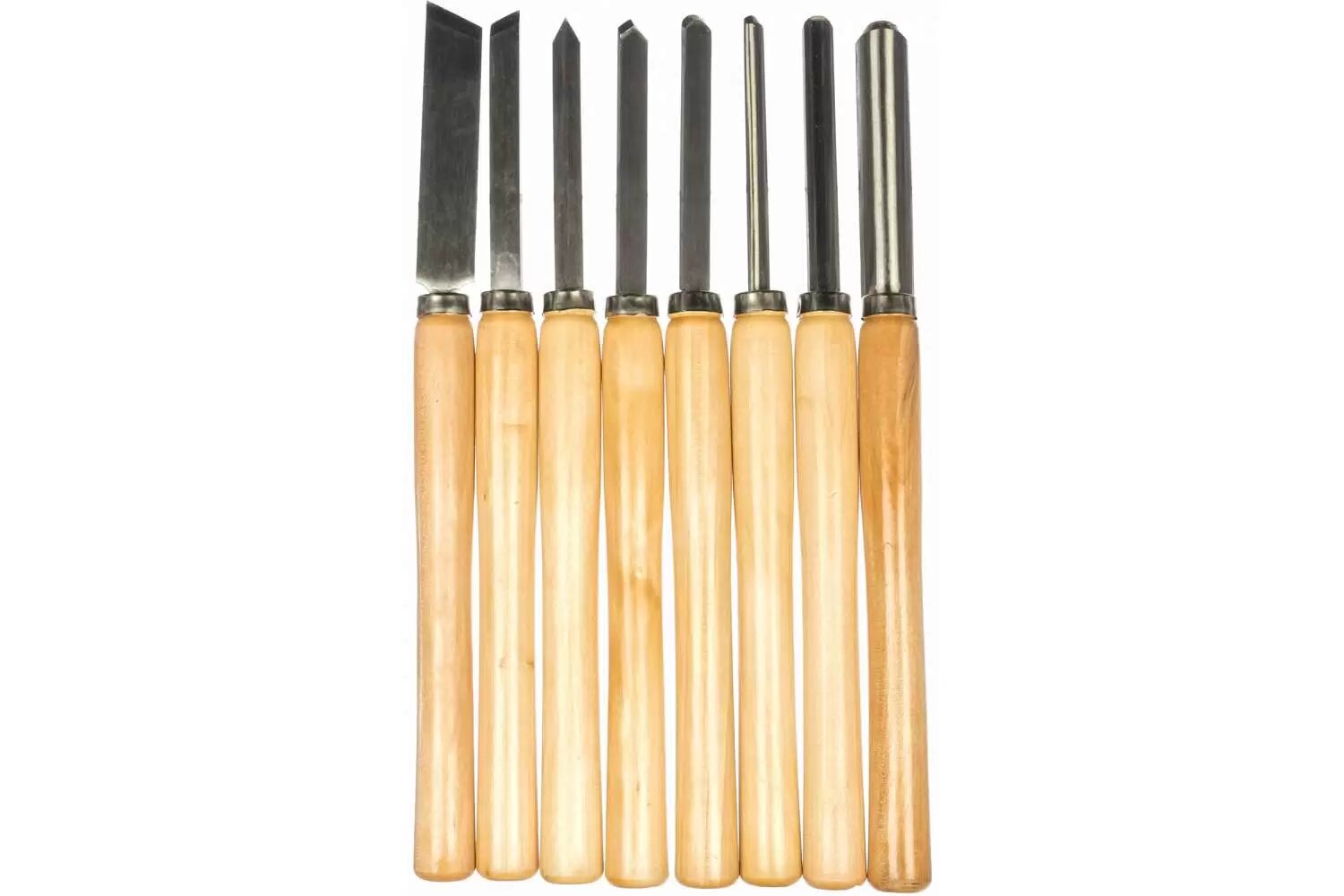 | Состав набора | плоский, скошенный, проходной, черновой нож 1 дюйм; плоский, скошенный, проходной, черновой нож 1/2 дюйм; копьевидный плоский, подрезной профильный нож 1/2 дюйм; копьевидный, отрезной нож 1/8 дюйм; закруглённый плоский профильный нож 1/2 дюйм;полукруглый профильный нож 1/4 дюйм; полукруглый профильный нож 1/2 дюйм; полукруглый профильный нож 1/4 дюйм. |