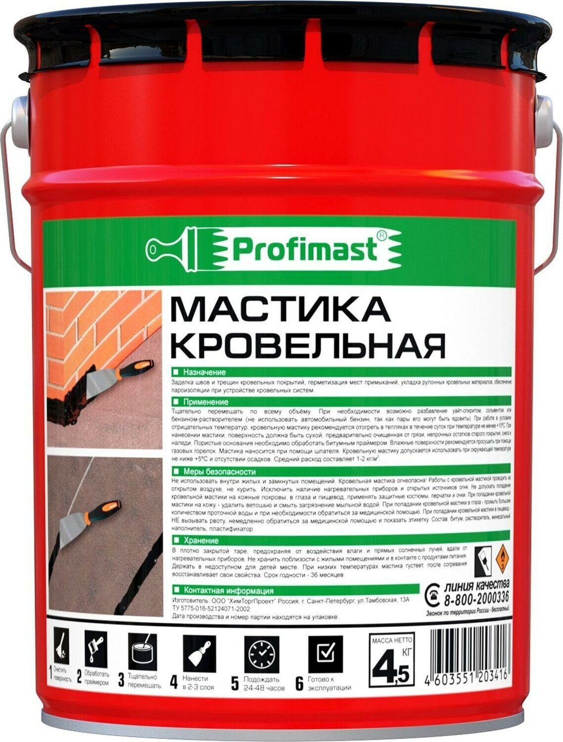 Мастика битумная Profimast, кровельная, черная, 4,5 кг