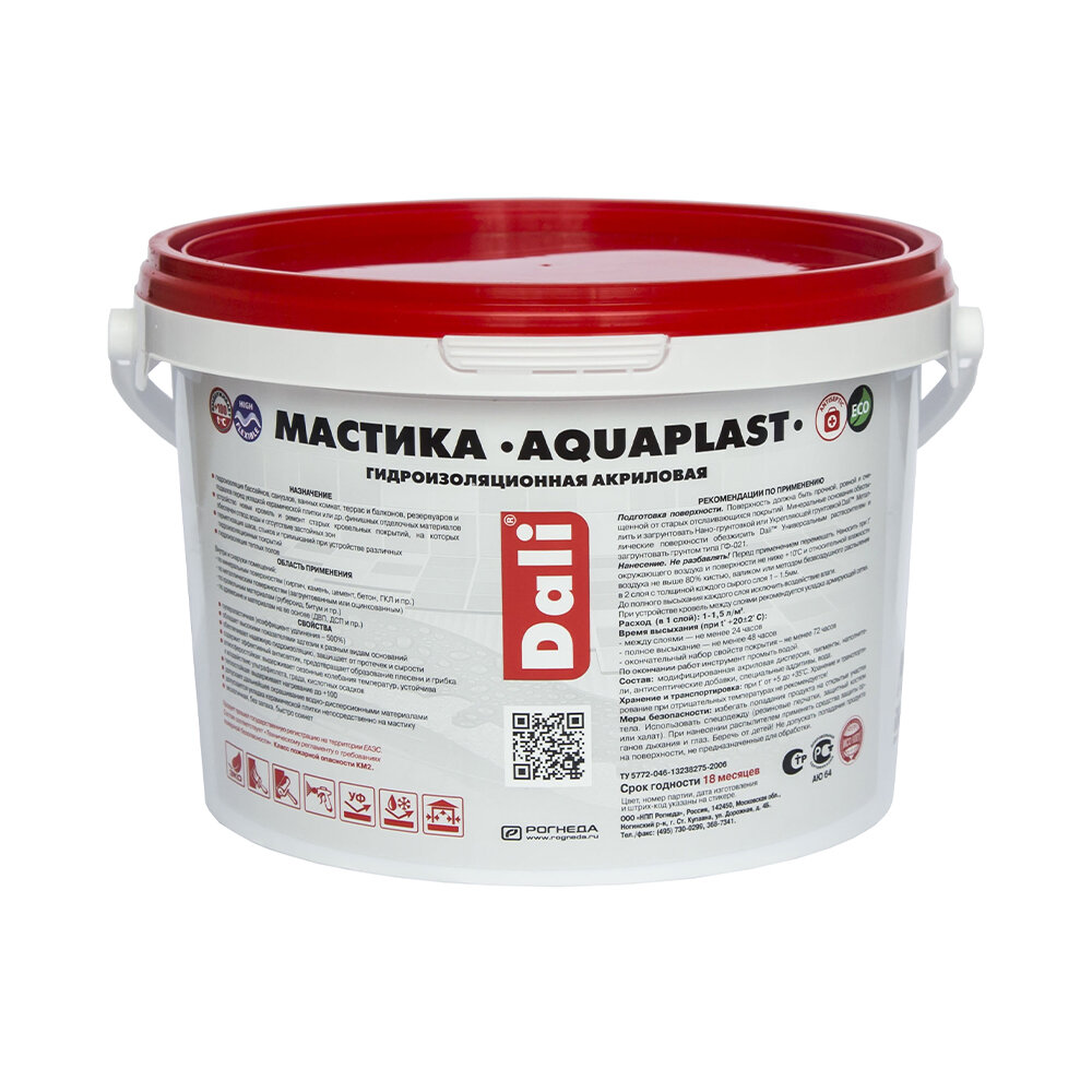 Ниже Вы можете прочитать отзывы на Мастика акриловая Dali Аквапласт гидроизоляционная 2,5 л, голубой, ознакомится с подробными характеристиками, посмотреть интересные обзоры и фотографии на Мастика акриловая Dali Аквапласт гидроизоляционная 2,5 л, голубой.